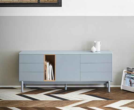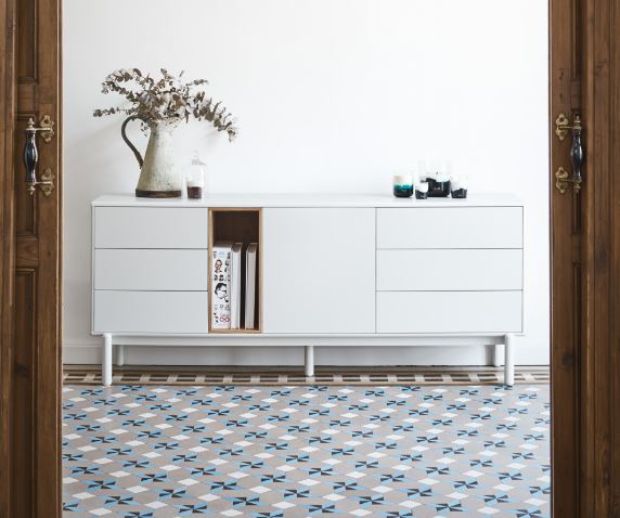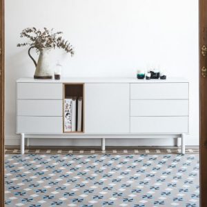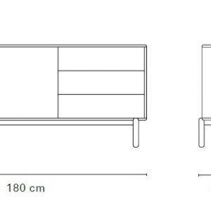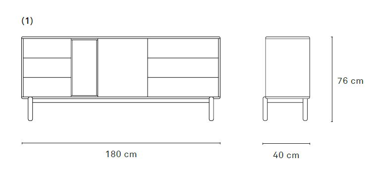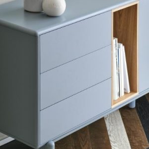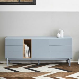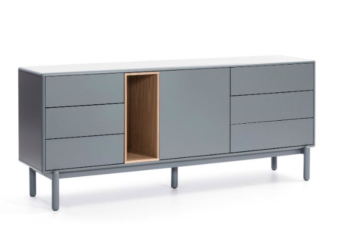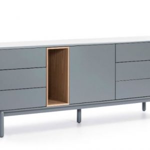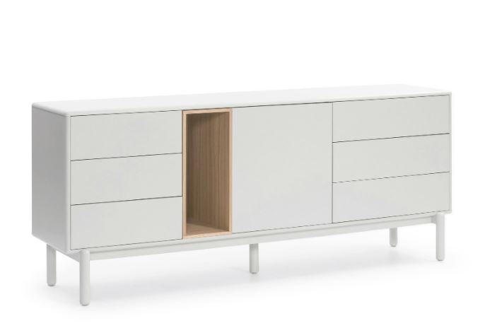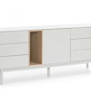 Aparador Corvo. El aparador Corvo cuenta con una puerta, seis cajones y un nicho vertical. Esto ofrece una amplia variedad de opciones de almacenaje.