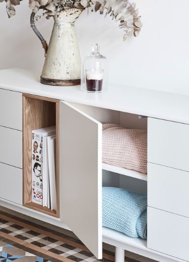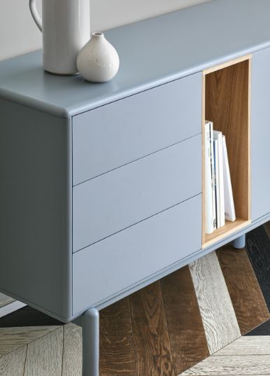 El redondeo a lo largo de todo el perímetro del mueble hace que Corvo sea una colección de aspecto suave y voluminoso. A su vez esto es lo que permite que todas las piezas queden integradas de manera precisa sin necesidad de piezas extra, generando un aspecto mucho más limpio y cuidado.
