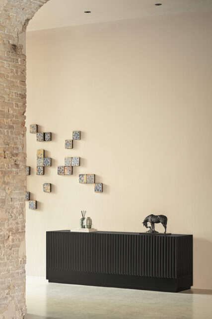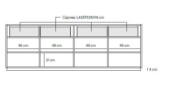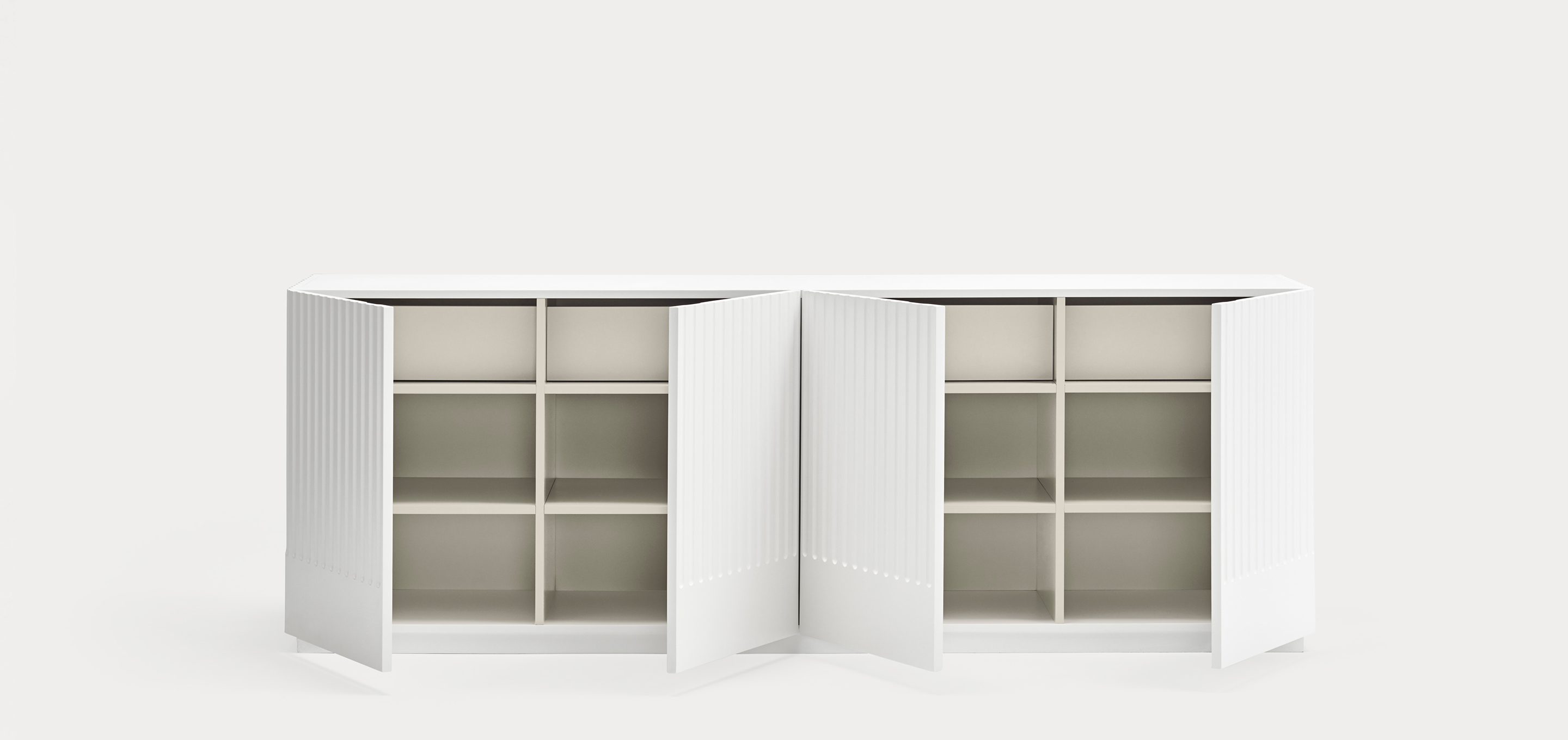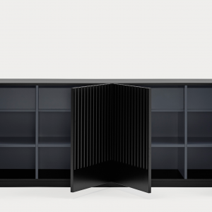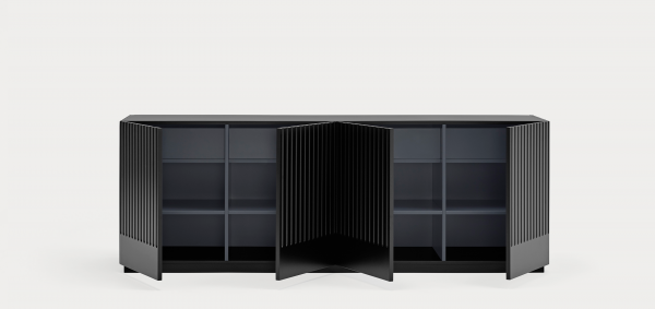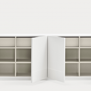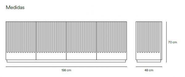 Aparador Doric I. El aparador Doric es grande, robusto y con unas líneas que nos recuerdan a la arquitectura de la Grecia clásica. Los surcos verticales y su gran presencia nos recuerda como estos clásicos buscaban la belleza y la proporcionalidad en sus obras. Es un gran aparador de casi dos metros de ancho que consta de 4 puertas con 4 cajones y 8 huecos. Gracias a su gran capacidad de almacenaje lo hace perfecto para guardar de forma ordenada y visible todo tipo de objetos.