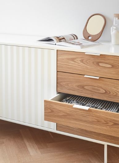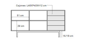 - Cajones exteriores: MDF chapado con roble natural