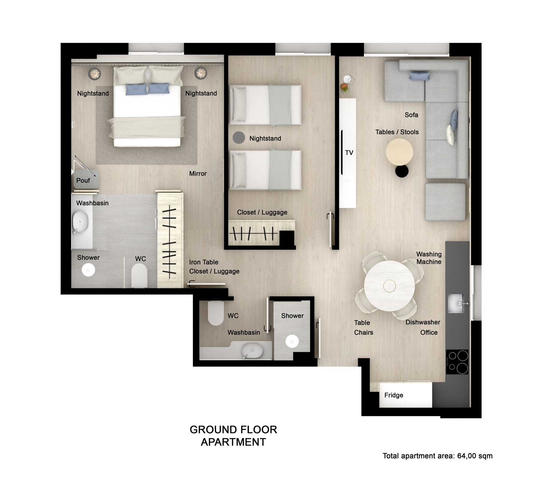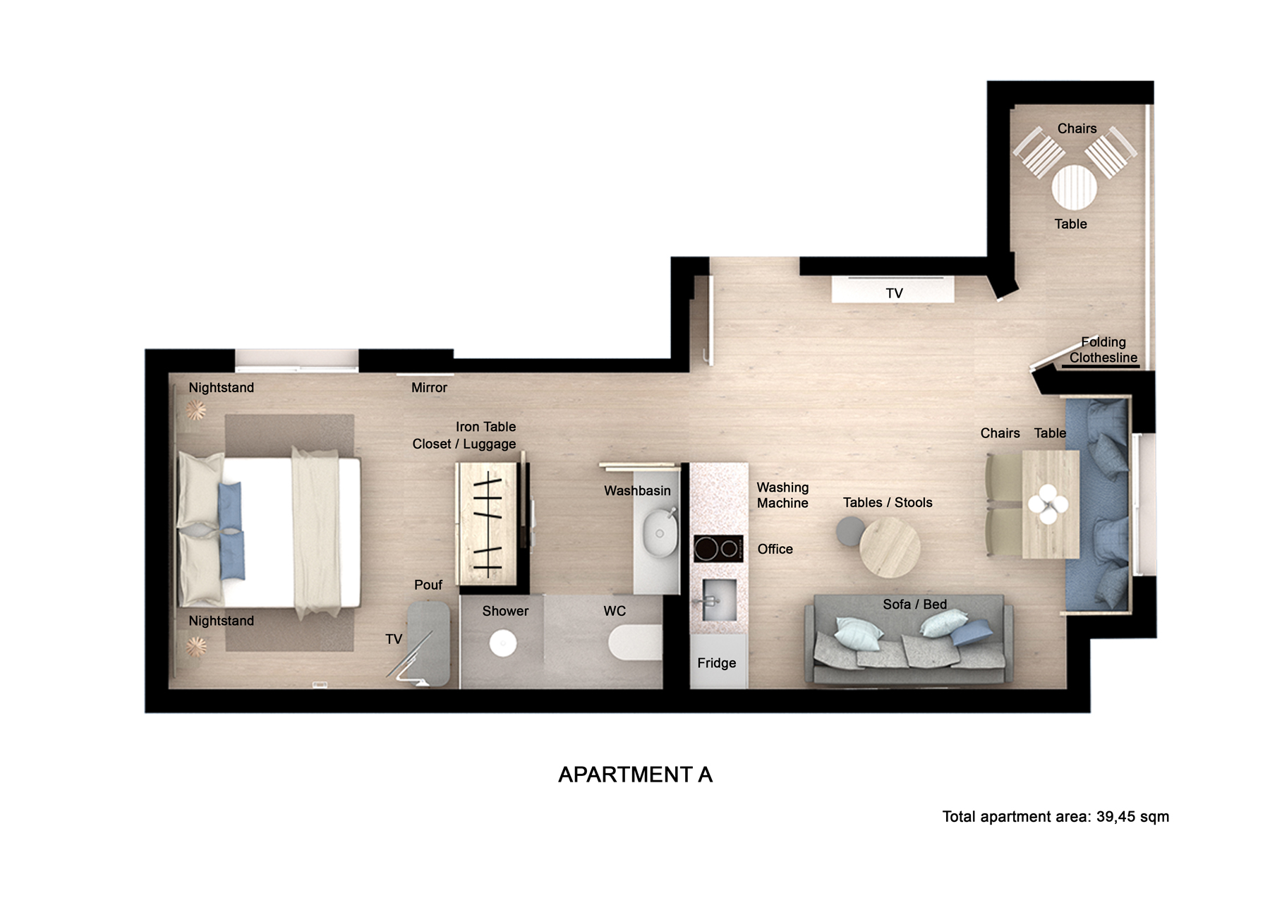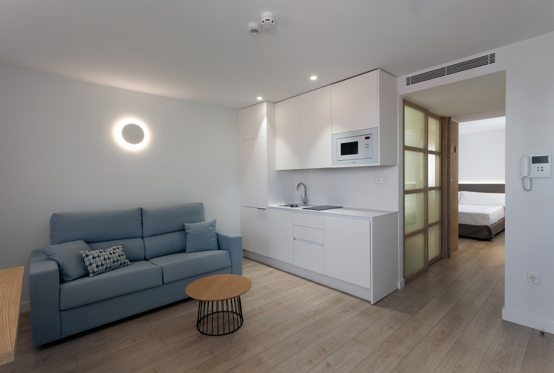 9 apartamentos de unos 35 m2 aprox con 3 diseños diferentes y 1 apartamento de 65m2 ubicado en planta baja. Inspirados en la luz, la comodidad y la vida abierta, donde cada detalle ha sido diseñado en perfecta armonía entre la belleza y la utilidad.
