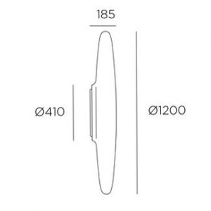 Aplique de exterior Mega. Se trata de un aplique de grandes dimensiones para iluminar de forma homogénea grandes espacios, como zonas de entrada, terrazas, porches …etc. Mega está disponible en dos medidas, de 80 cm y 120 cm de diámetro, e incorpora la tecnología CCT, con la que mediante un switch se puede escoger la temperatura de color. La colección proyecta una luz uniforme y confortable e incluye driver DALI regulable.