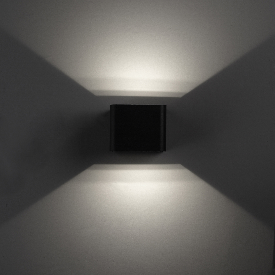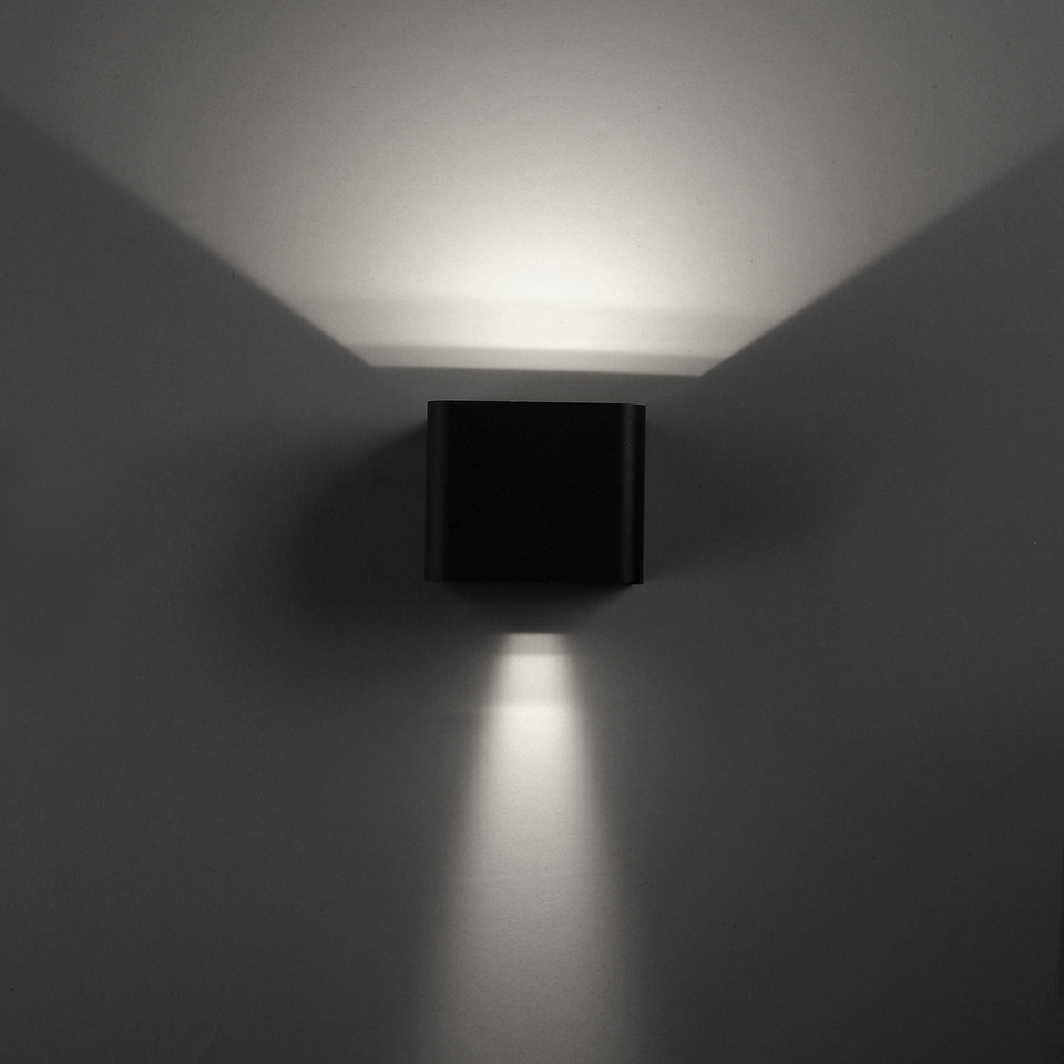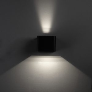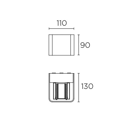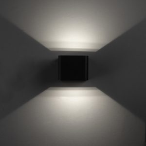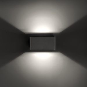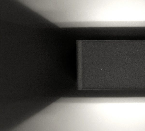 Aplique de exterior Wilson. Wilson es una colección de apliques de formas cuadradas y rectangulares, especialmente diseñados para integrarse en el espacio ya que priman una estética cuidada y sin tornillos vistos.