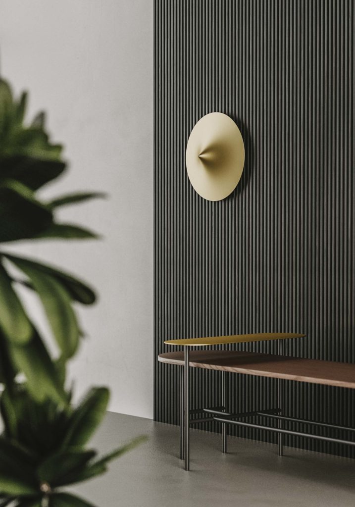 Aplique de pared Hat. El aplique de pared Hat, es una pieza que nos traslada a oriente. Evoca aires de los campos de arroz asiáticos. Se encuentra disponible en varios acabados. Es sofisticado y original.