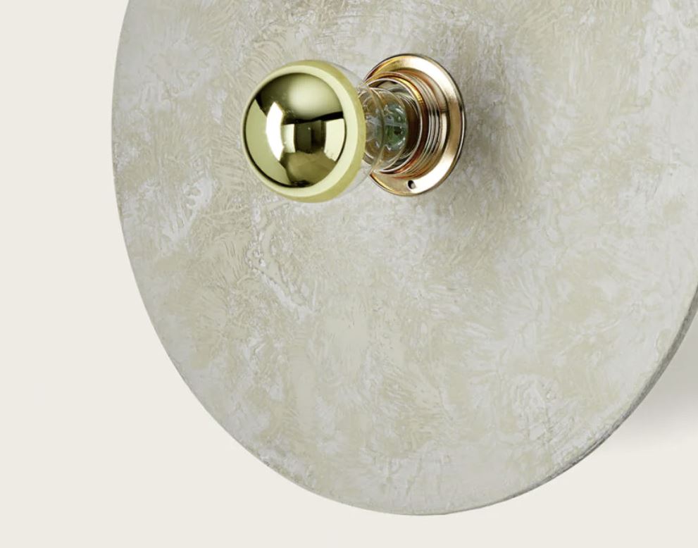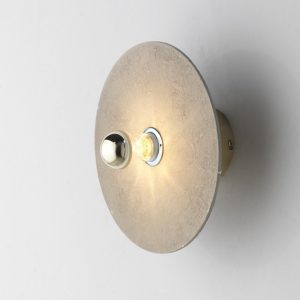 El aplique Kassy, como el aplique Alba, nos permite hacer combinaciones a diferentes niveles. Gracias a las dos medidas del accesorio metálico que va a la pared (5cm y 10cm) podremos crear composiciones originales superponiendo los discos de cerámica o alabastro (aplique Alba).