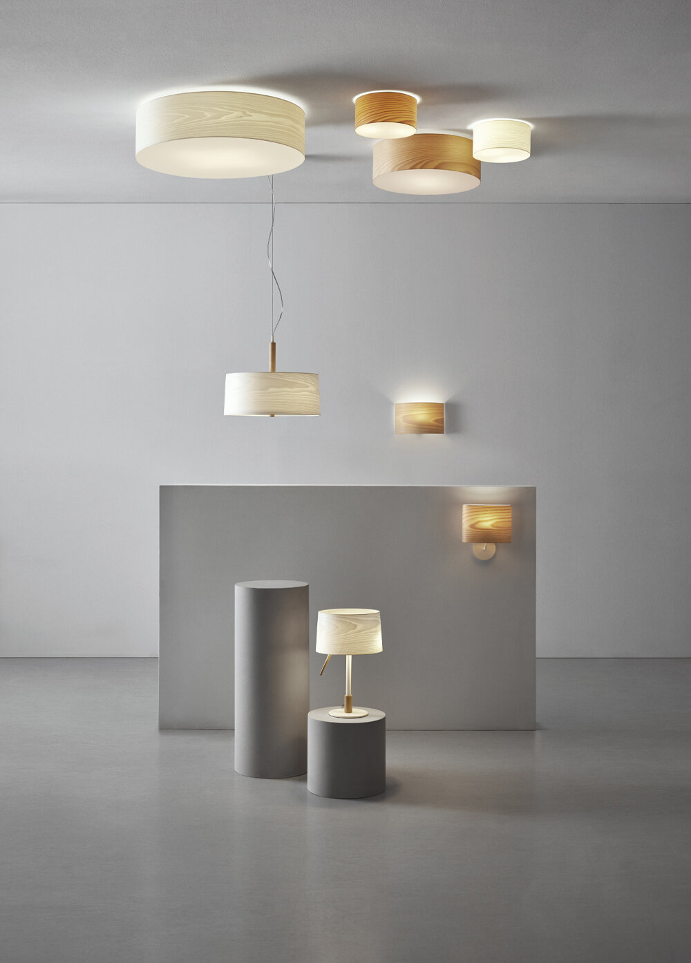 • Detalles: pantalla madera natural de haya o fresno tintado en blanco.