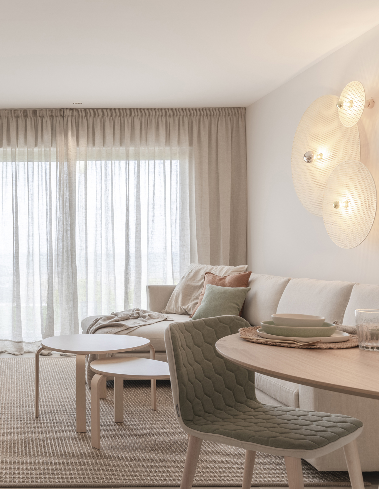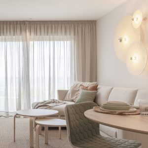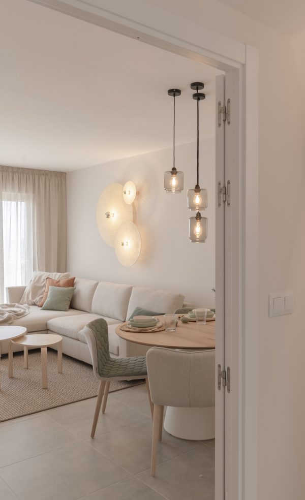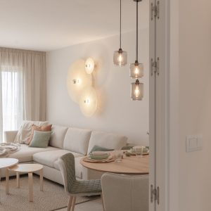 Este precioso aplique lo utilizamos para un proyecto que realizamos con mucho cariño. Un piso piloto para la costa murciana. Se colocó en un gran paño a modo de escultura. Aportó al salón un ambiente natural en conjunto con el resto del proyecto.