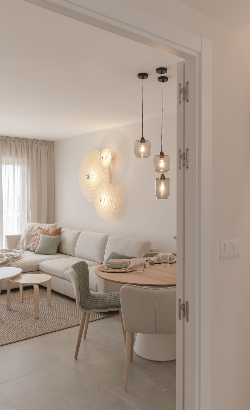 El aplique Tan Tan , como el aplique Alba y Kassy, nos permite hacer combinaciones a diferentes niveles. Gracias a las dos medidas del accesorio metálico que va a la pared (5cm y 10cm) podremos crear composiciones originales superponiendo los discos de rattan alabastro (alba) o cerámica (aplique Kassy).