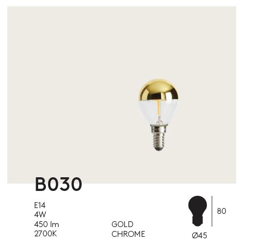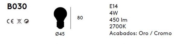 Bombilla decorativa B030. La bombilla decorativa B030 de Aromas del Campo es una original bombilla de la misma colección que las bombillas B035 y B038 La diferencia radica en que esta bombilla es E14, rosca fina. Son unas bonitas bombillas hechas para que se luzcan y reflejen.