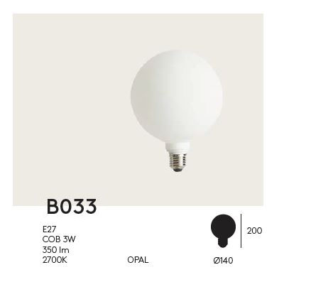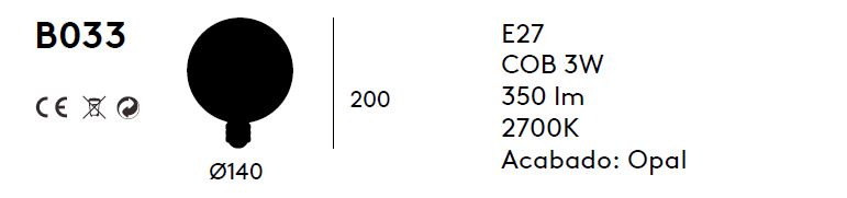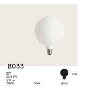 Bombilla decorativa B033. Bombilla en cristal opal de un tamaño generoso (20 cm) y de temperatura cálida (2700K)