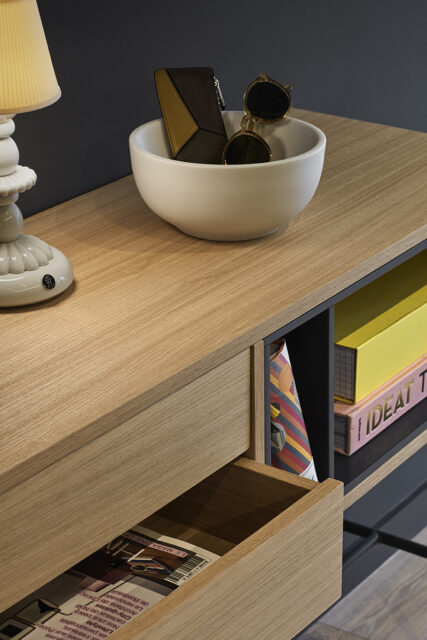 Consola Yoko. La colección Yoko trata de ofrecer una opción sencilla y moderna de almacenaje a través de una colección sencilla, de líneas rectas y un diseño destacablemente ligero.