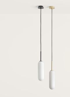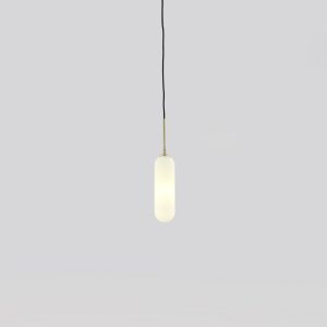 Lámpara colgante Atil. De la colección Atil, esta luminaria es la versión sencilla. Se trata de una tulipa de formas redondeadas de cristal opal, con una estética delicada, sencilla y elegante. Ideal para poder crear una escultura lumínica colgante a diferentes alturas o simplemente utilizando una a ambos lados de la cama como luz auxiliar en el dormitorio.