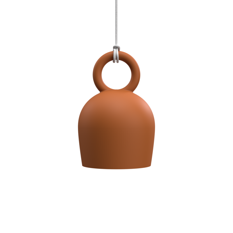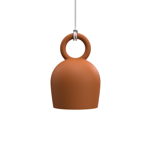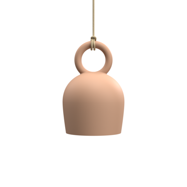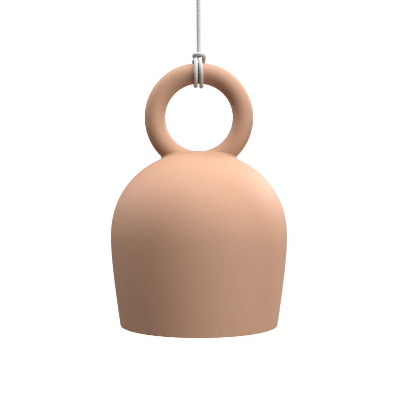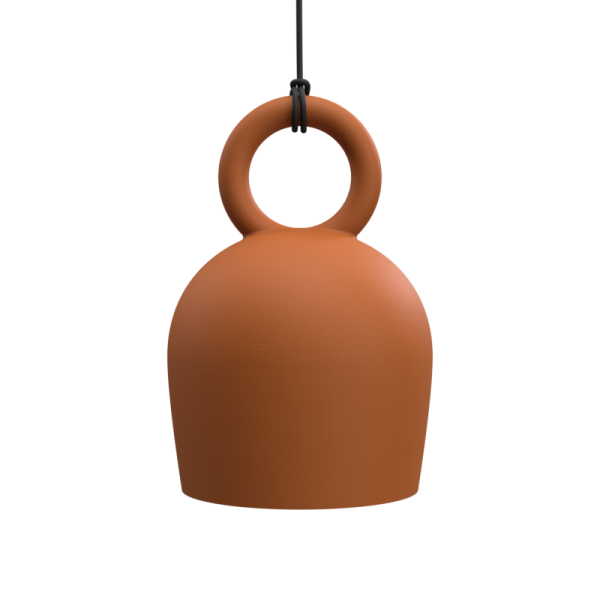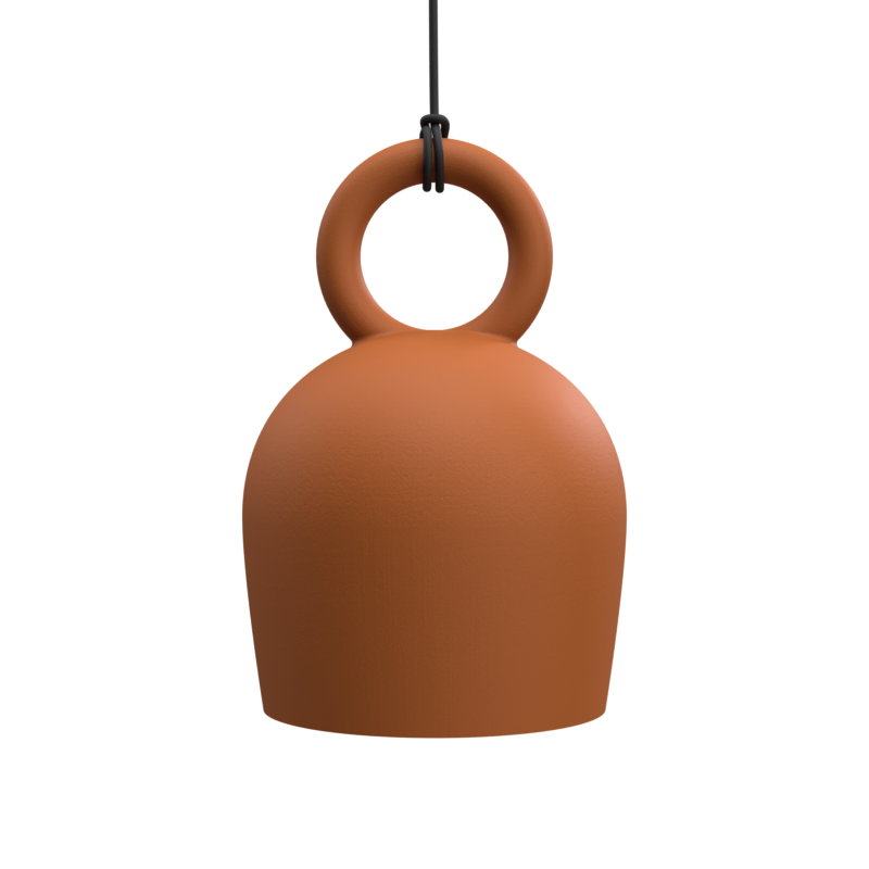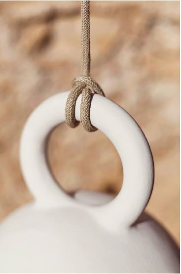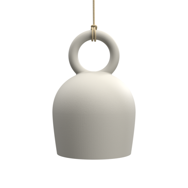 Lámpara colgante Caló. Caló es una lámpara colgante que recoge la tradición de los botijos que cuelgan en casa y árboles de las tierras de secano donde el sol descarga toda su intensidad más allá del verano. Esta pieza, fruto de un paisaje de bancales salpicados por rotundos tormos de tierra es capaz de refrescar las noches de verano con su voluminosa presencia
