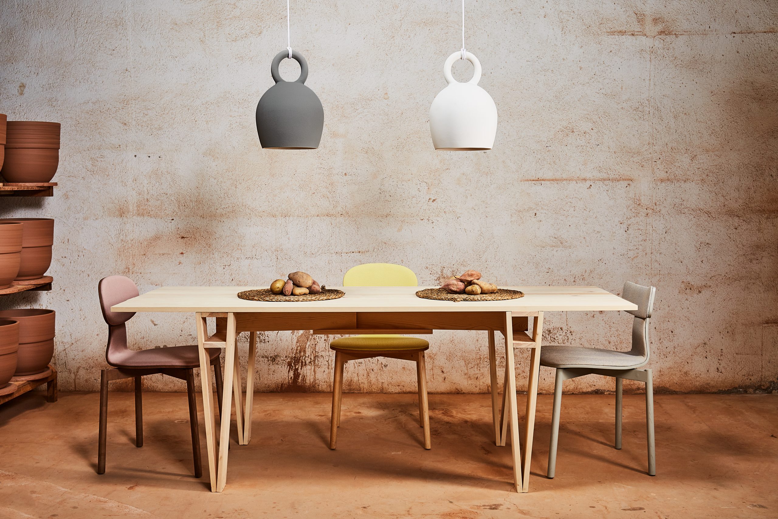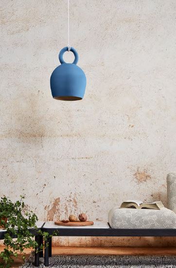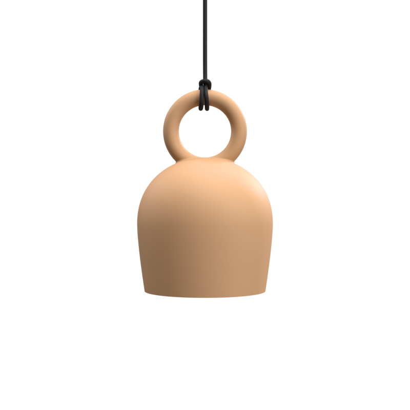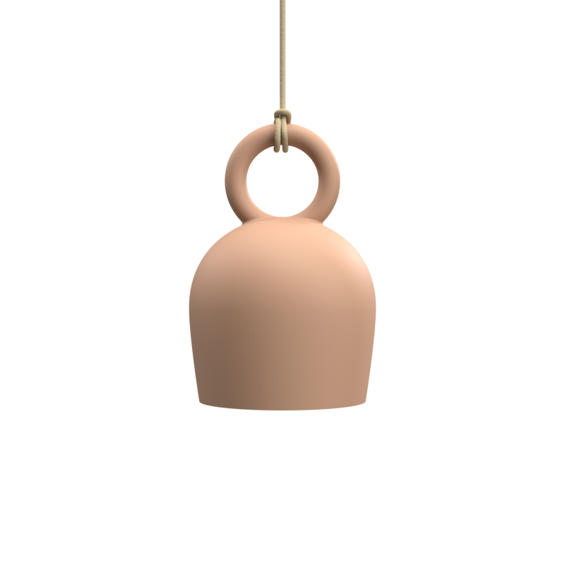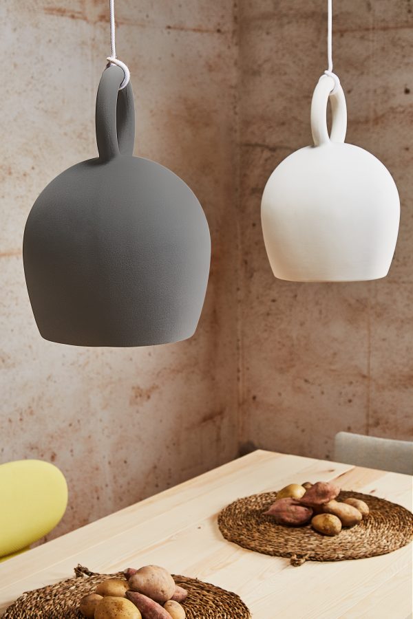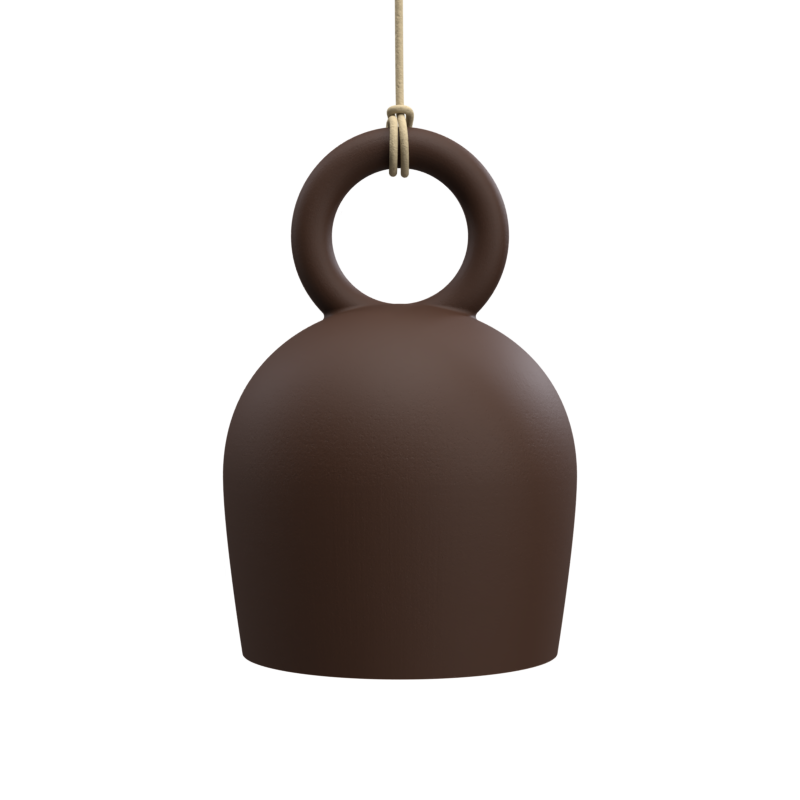 Lámpara colgante Caló. Caló es una lámpara colgante que recoge la tradición de los botijos que cuelgan en casa y árboles de las tierras de secano donde el sol descarga toda su intensidad más allá del verano. Esta pieza, fruto de un paisaje de bancales salpicados por rotundos tormos de tierra es capaz de refrescar las noches de verano con su voluminosa presencia