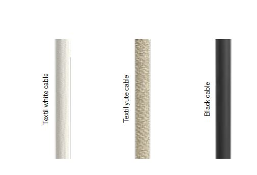 • Cable de 2 metros textil yute, textil blanco o silicona negra.