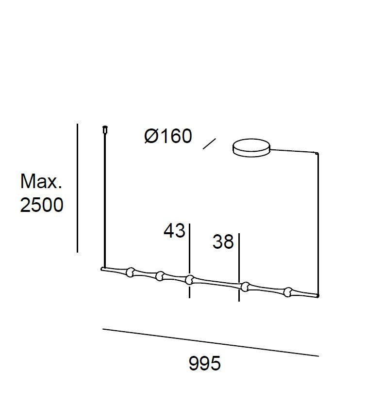 - 43 x 38 x 995 (Versión horizontal/Florón y sujeción al techo)