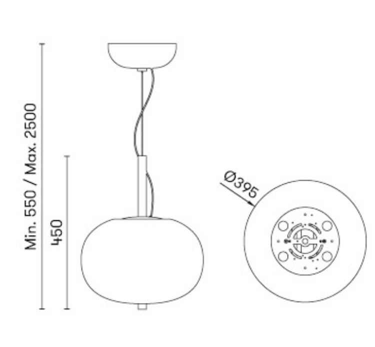 • 39,5 cm / 2 esferas: 36,1 W /1833 Lm