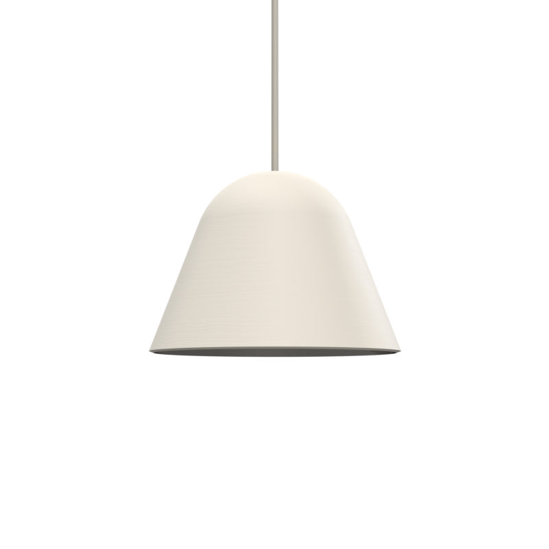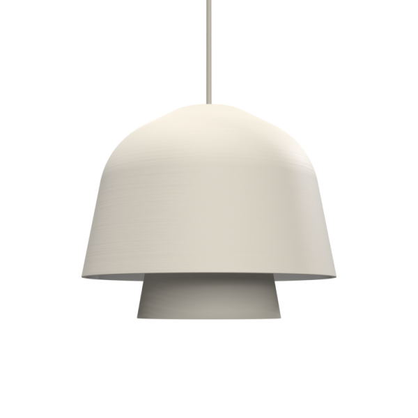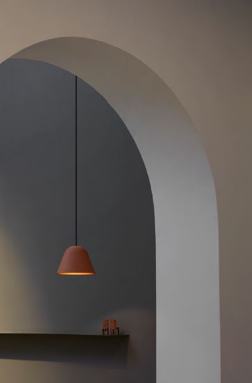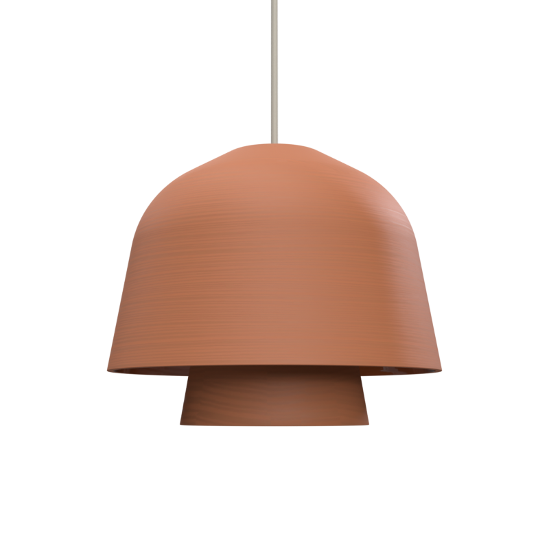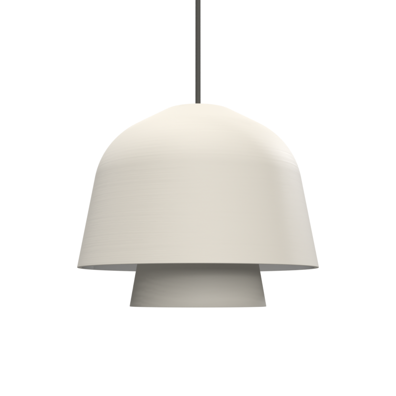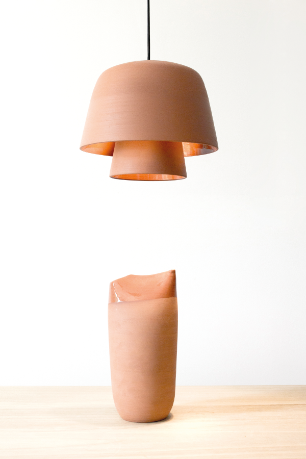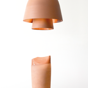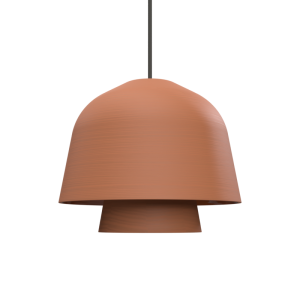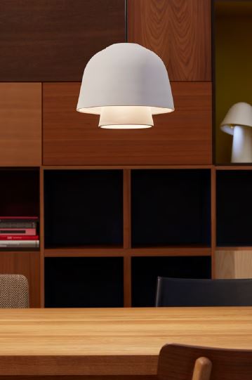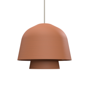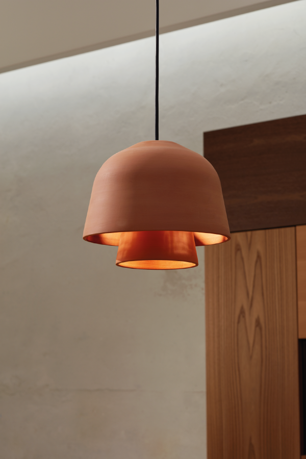 Sus formas simples y orgánicas trasmiten una tranquilidad natural. La colección se compone de una pequeña lámpara de sobremesa en la que nunca se ve la fuente de luz y versiones de suspensión. La lámpara colgante de doble pantalla ofrece una iluminación directa en el centro de la mesa y más sutil y difusa sobre los comensales. La arcilla y el trabajo artesano de Pott hacen que cada lámpara sea única.