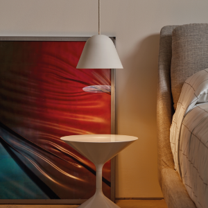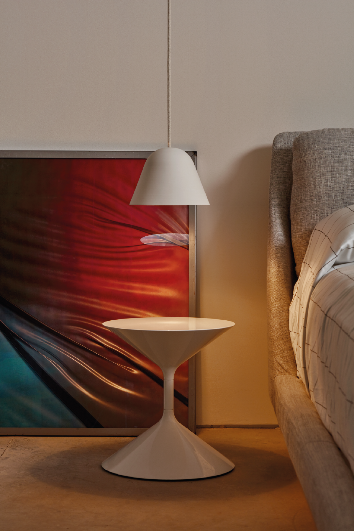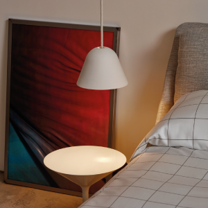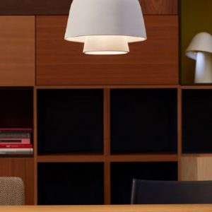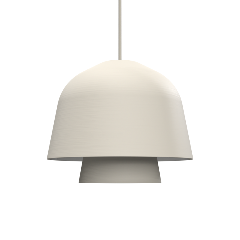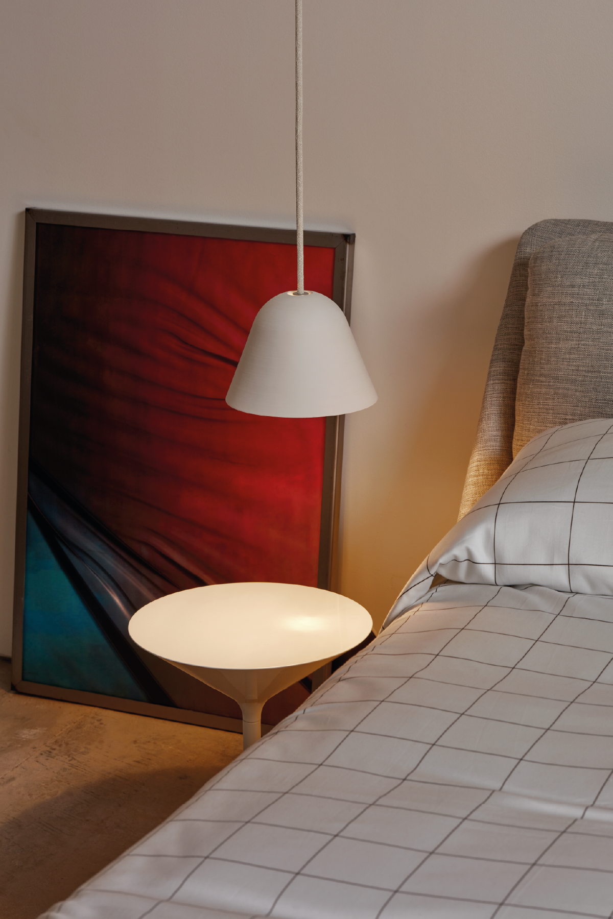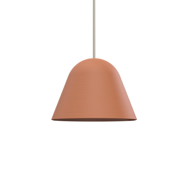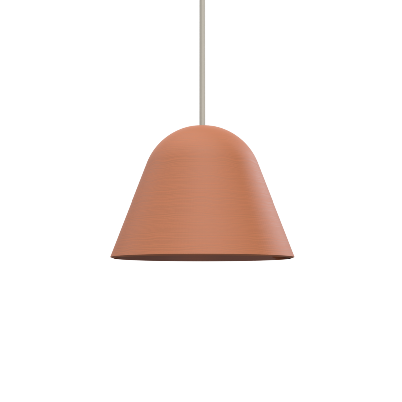 Sus formas simples y orgánicas trasmiten una tranquilidad natural. La colección se compone de una pequeña lámpara de sobremesa en la que nunca se ve la fuente de luz y versiones de suspensión. La lámpara colgante de doble pantalla ofrece una iluminación directa en el centro de la mesa y más sutil y difusa sobre los comensales. La arcilla y el trabajo artesano de Pott hacen que cada lámpara sea única.