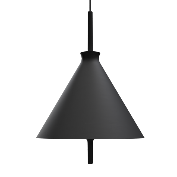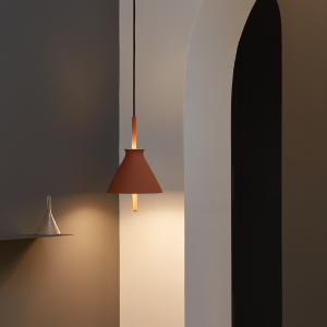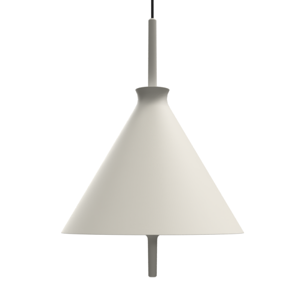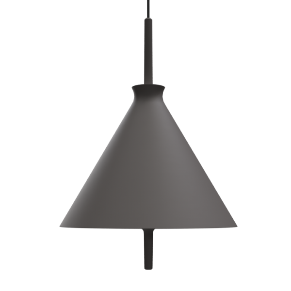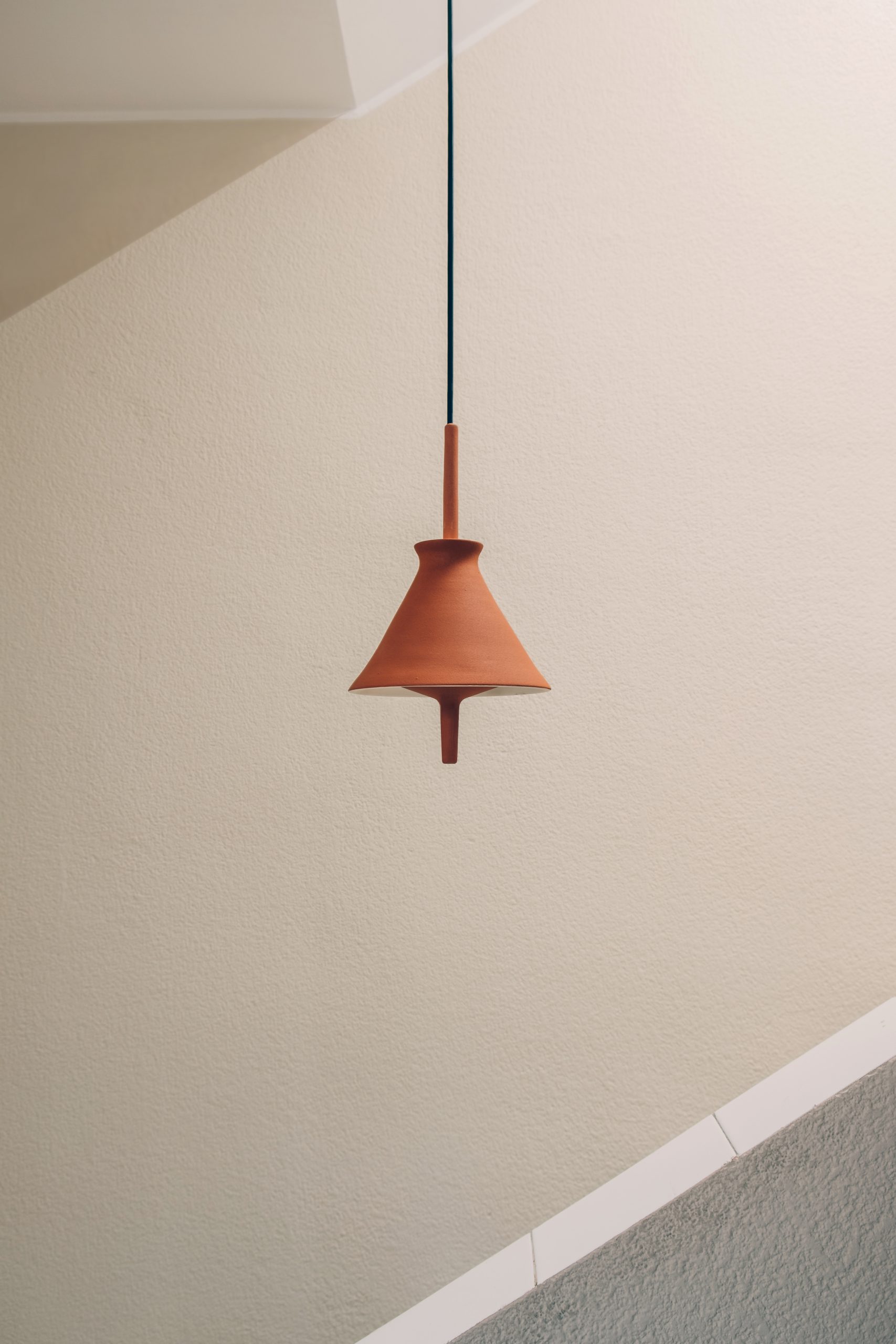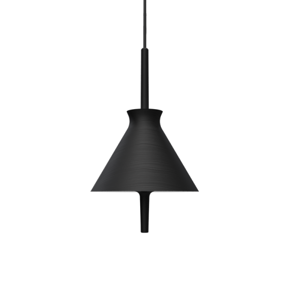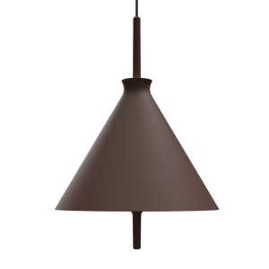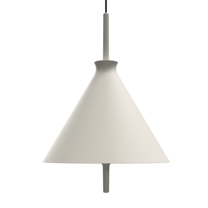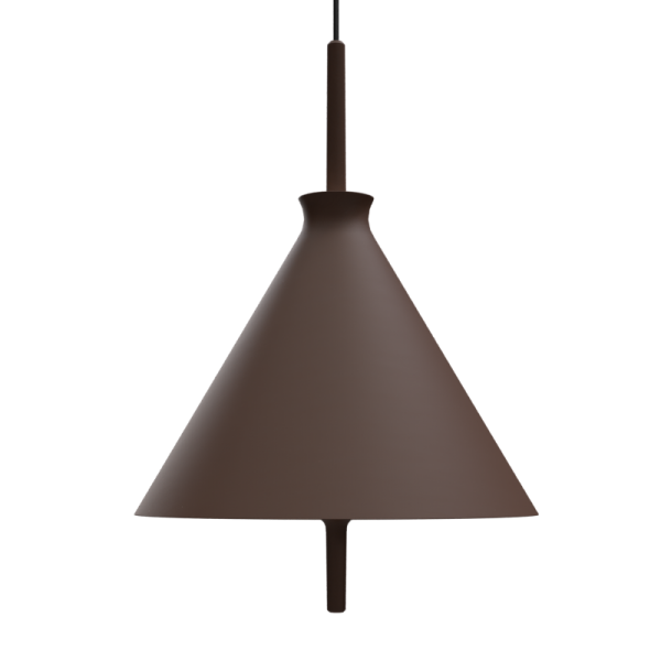 Lámpara colgante Totana. La lámpara suspendida Totana es parte de una colección de luminarias inspirada en los orígenes geográficos de la marca POTT. Totana (Murcia-España) tiene paisaje de contrastes, tonalidades de barro, alfarería y sabiduría, luces y sobres, fuego y agua. Formada por dos volúmenes que se interseccionan. El primero envolvente, gestual, voluminoso, de forma cónica con una terminación superior que hace referencia a la boca de un envase cerámico torneado a mano; y el segundo lineal y estructural, definido como un trazo. Como resultado, una luminaria cálida en equilibrio entre la materialidad y la luz.