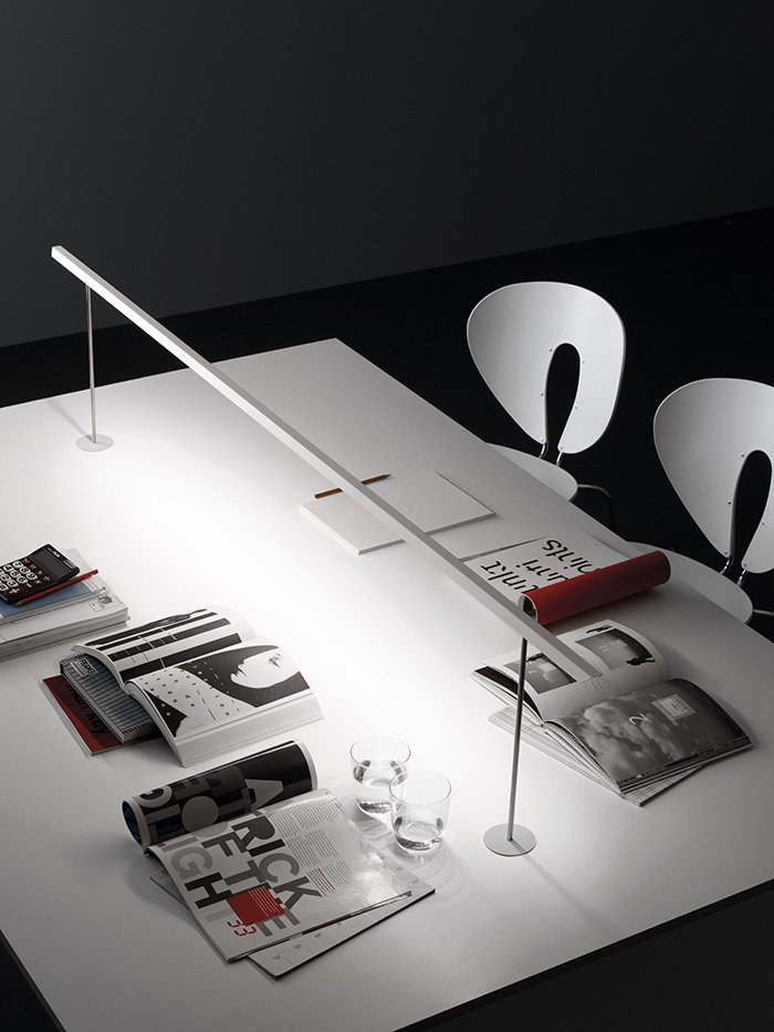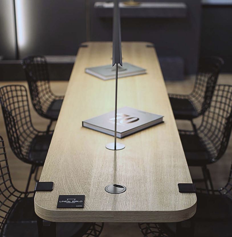 Lámpara de sobremesa Lineal Biblo. La lámpara de sobremesa Lineal Biblo está fabricada en aluminio inyectado con iluminación LED. Pensada como iluminación para espacios de trabajo multi-funcionales o bibliotecas. De fácil montaje, con fijación en mesa mediante dos arandelas en sándwich. Driver se puede incorporar individualmente en la parte inferior de la mesa.