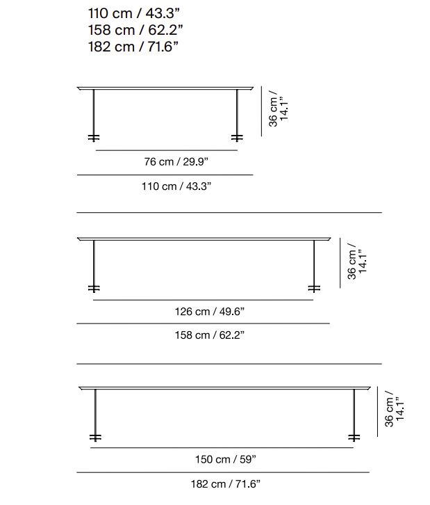 - 110 cm: 14W, 1500 Lumen, ángulo de apertura 120º, 2700 K.