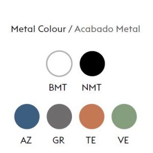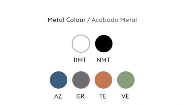 - Cuerpo: metal hierro pintado o bañado. Soporte de madera acabado haya.