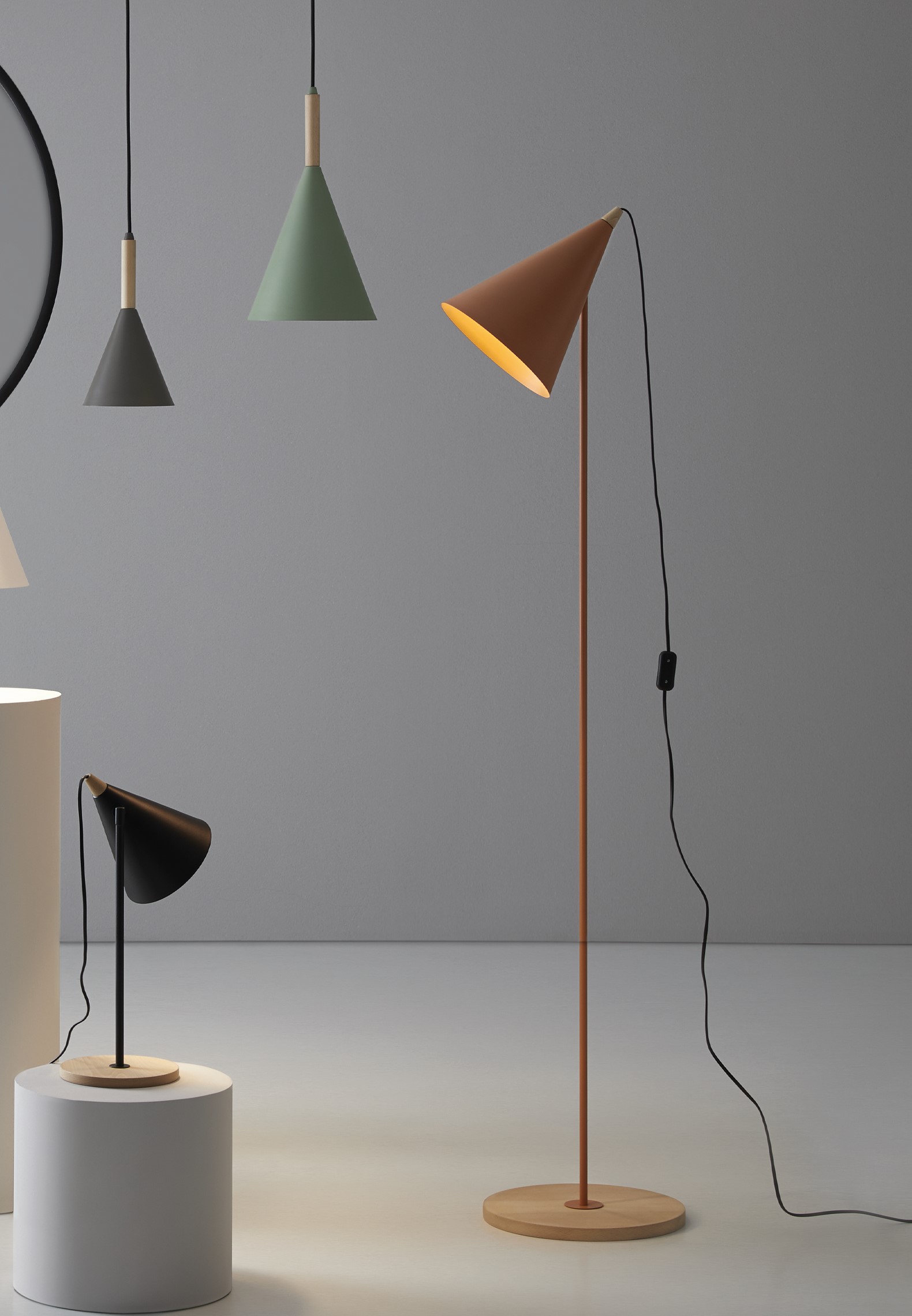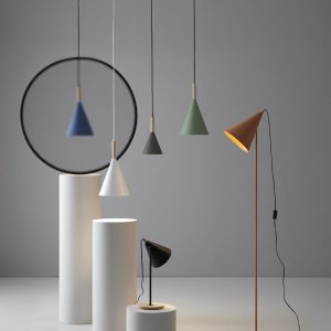 LÁMPARA DE PIE BERKA. La lámpara de pie Berka es una luminaria que se adapta a la perfección a muchísimos tipos de proyectos de interior. Tiene una marcada pantalla cónica rematada con una pieza de madera de haya torneada que le otorga una estética muy actual, sencilla, elegante y versátil. Es una lámpara ideal para un rincón de lectura o como luz de apoyo en cualquier estancia.