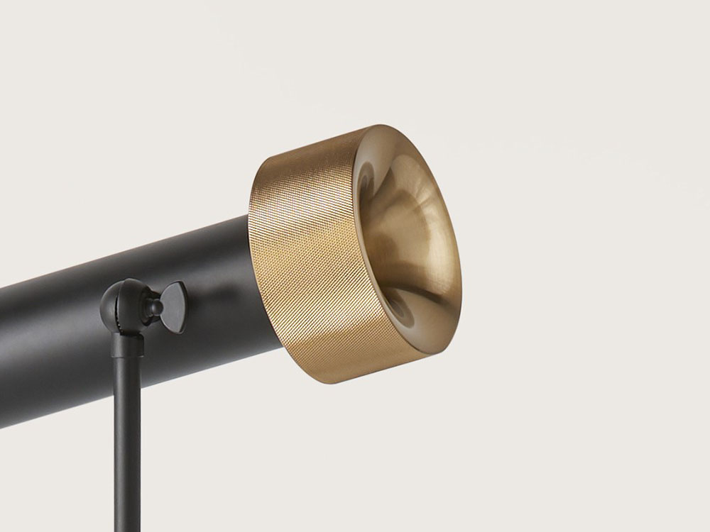 Lámpara de pie Focus. La lámpara de pie Focus debe su nombre a su función principal. Enfocar y dirigir la luz. Es una lámpara funcional, elegante y estéticamente delicada. De diseño minimal y sobrio. Su cabezal articulado hace de Focus una luminaria ideal para acentuar elementos o para la lectura.