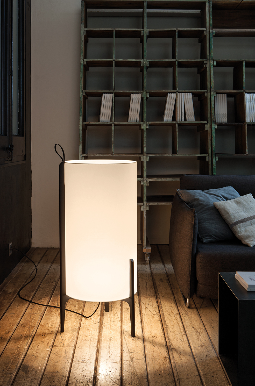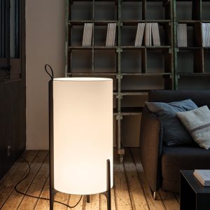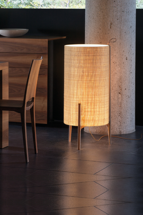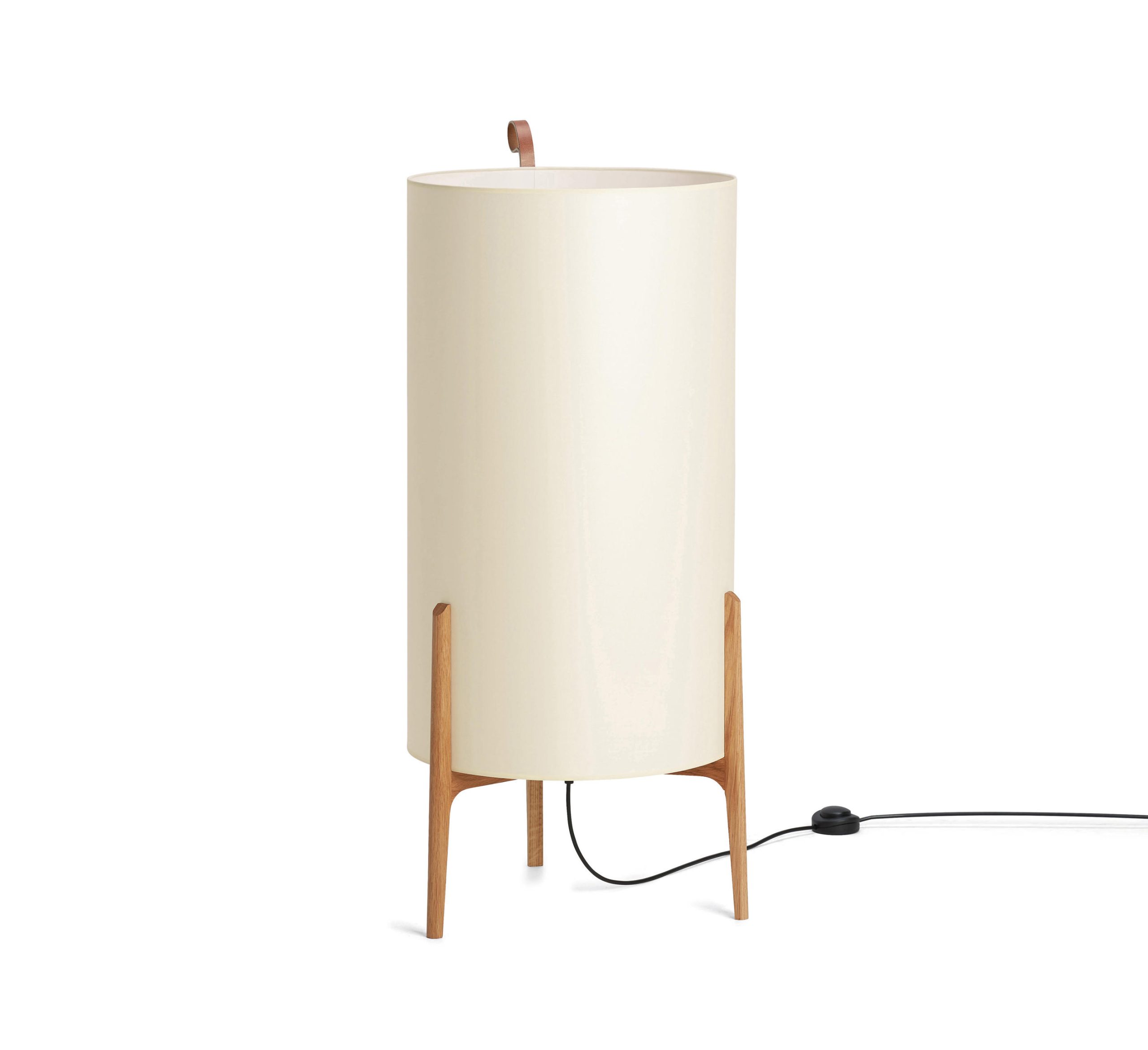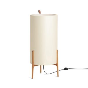 Lámpara de pie Greta. La lámpara de pie Greta podría tratarse de una escultura, por su belleza y simplicidad natural. Una ligera estructura de madera de roble sostiene de forma delicada una gran pantalla. Gracias a las diferentes opciones de pantalla disponibles, la luz generada por las mismas es suave, delicada y tranquila. Generará un ambiente sosegado e ideal para momentos de relax. Dispone de un asa de cuero, como toda su colección.