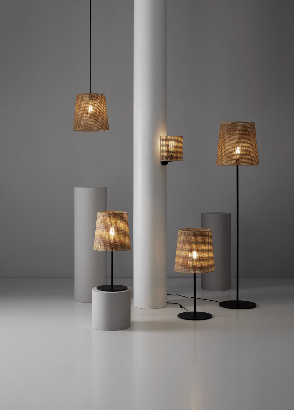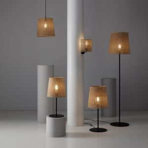 LÁMPARA DE PIE KANATAN. La lámpara de pie Kanatan es un punto de encuentro entre el pasado y el presente a través de la combinación de los materiales que la forman. Un pergamino tapizado da forma a la pantalla creando de esta manera un contraste con el cuerpo de metal de acabado negro mate.