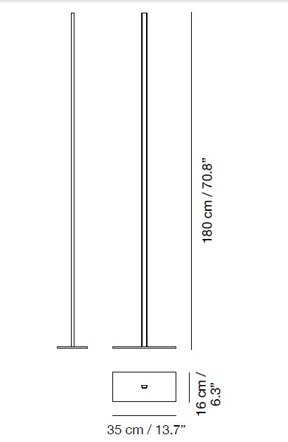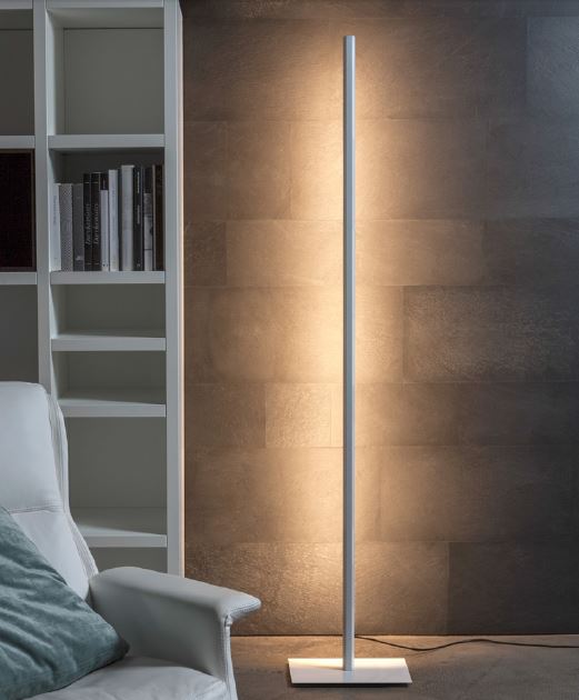 Lámpara de pie LINEAL. La lámpara de pie Lineal, está fabricada en aluminio inyectado y LED integrado. Es la expresión máxima del minimalismo, su manera de proyectar la luz hacia una pared la hace muy versátil, pudiendo iluminar puntos específicos o rincones buscando jugar con la luz cálida.