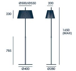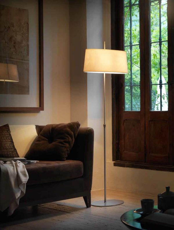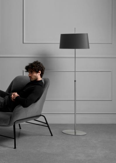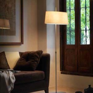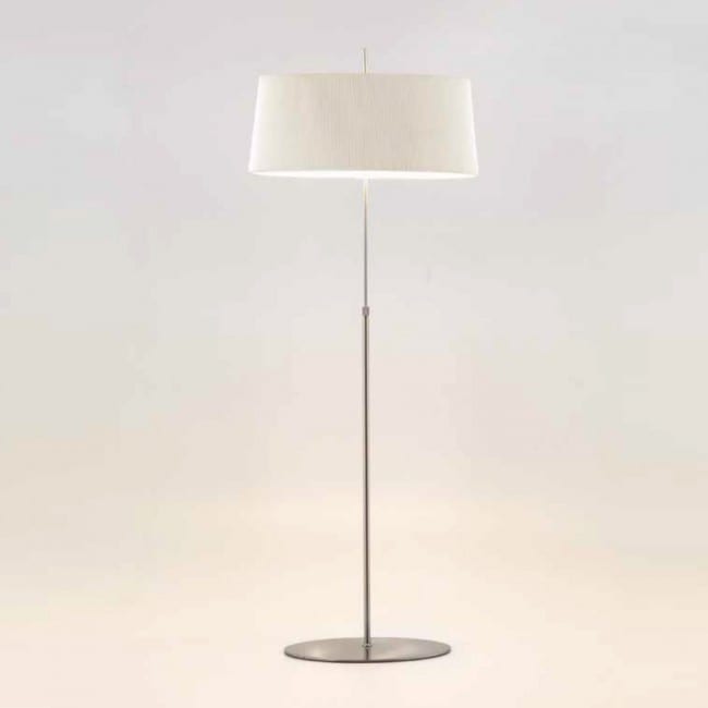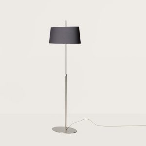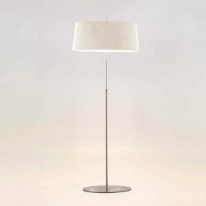 Lámpara de pie Ona. La lámpara Ona esta fabricada en níquel satinado y su pantalla es de color blanco liso o negro liso. Un diseño clásico y elegante. Ideal para cualquier salón o comedor o dormitorio.