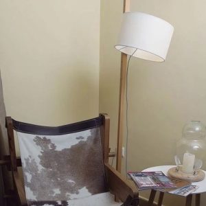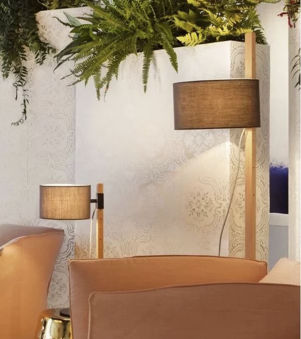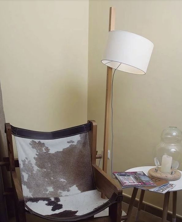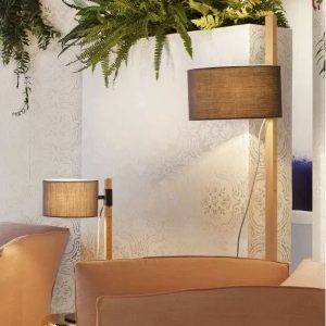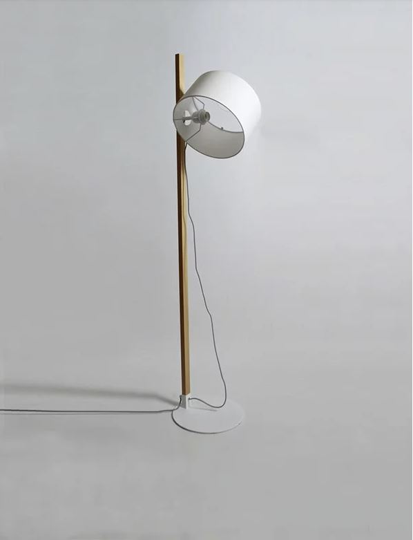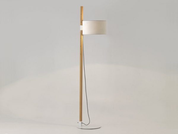 Lámpara de pie RIU. La lámpara de pie Riu destaca por su gran versatilidad dando que por su estética y por los materiales en los que está realizada aporta suavidad y calidez a cualquier estancia. Lámpara de pie con difusor en la parte superior. La pantalla se desliza por la estructura de madera pudiendo orientar la luz.
