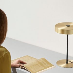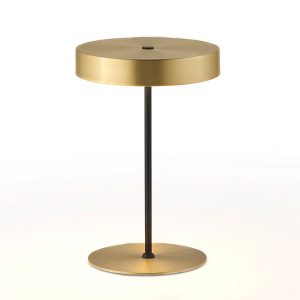 Lámpara de sobremesa Ambor. La lámpara de sobremesa Ambor es sencilla pero muy diferente. Se trata de un círculo de metal con una tulipa acrílica opal que proyecta su luz de manera cálida y directa. Se encuentra disponible en negro mate y oro mate.
