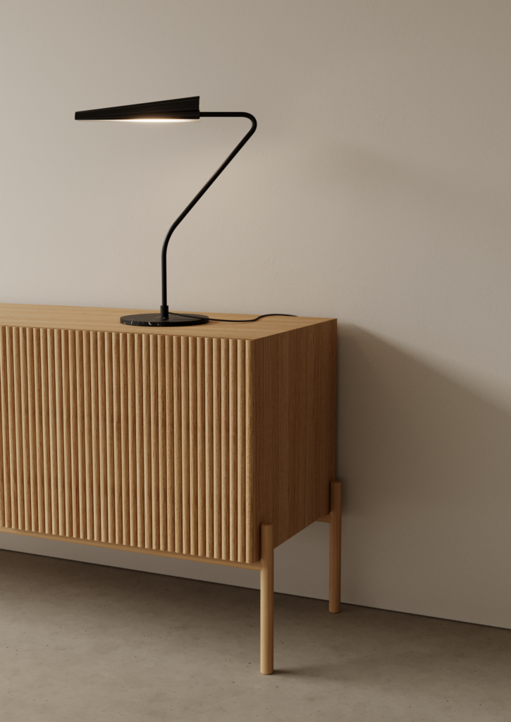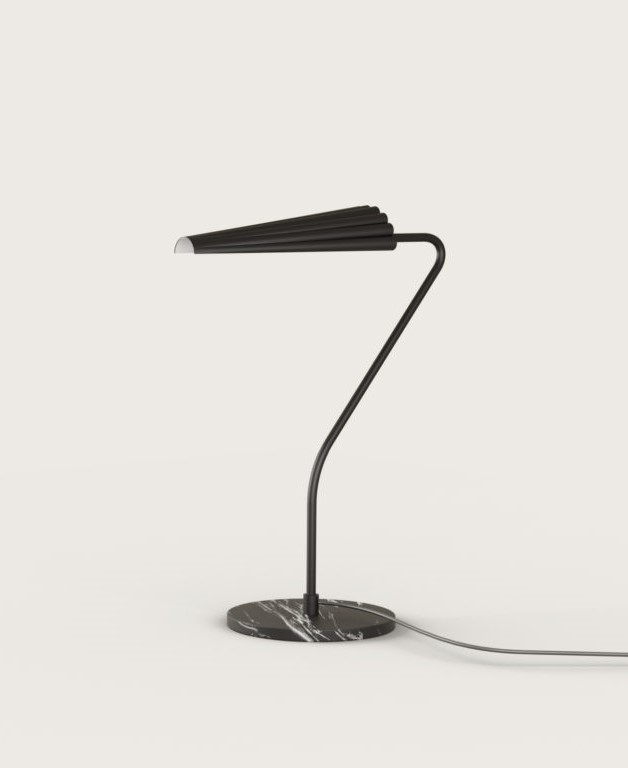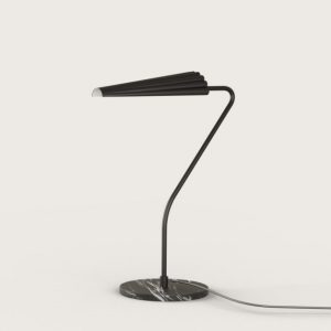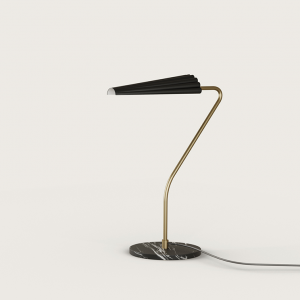 Lámpara de sobremesa Bion. La lámpara de sobremesa Bion destila elegancia. Una rotula delgada y con un movimiento delicado, sujeta una tulipa muy original. Su base de mármol le proporciona estabilidad y presencia.