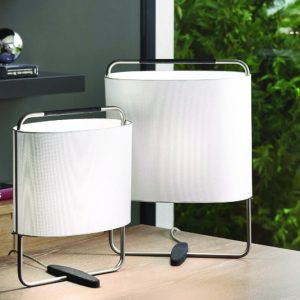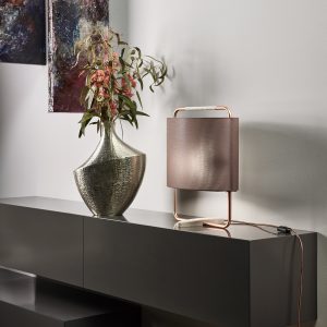 Lámpara de sobremesa Margot. La lampara de sobremesa Margot tiene su estructura en metal con accesorio en madera de roble con barniz satinado. Están disponibles dos medidas. Su diseño original y elegante, la hace un complemento decorativo perfecto para el salón, dormitorio o cualquier lugar de tu hogar.
