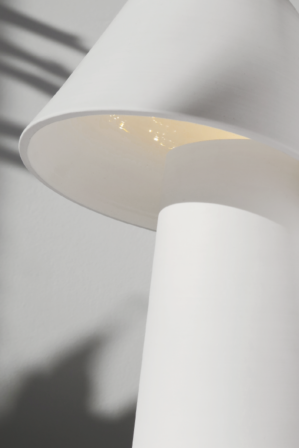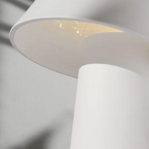 Sus formas simples y orgánicas trasmiten una tranquilidad natural. La colección se compone de una pequeña lámpara de sobremesa en la que nunca se ve la fuente de luz y versiones de suspensión. La lámpara colgante de doble pantalla ofrece una iluminación directa en el centro de la mesa y más sutil y difusa sobre los comensales. La arcilla y el trabajo artesano de Pott hacen que cada lámpara sea única.
