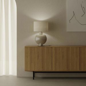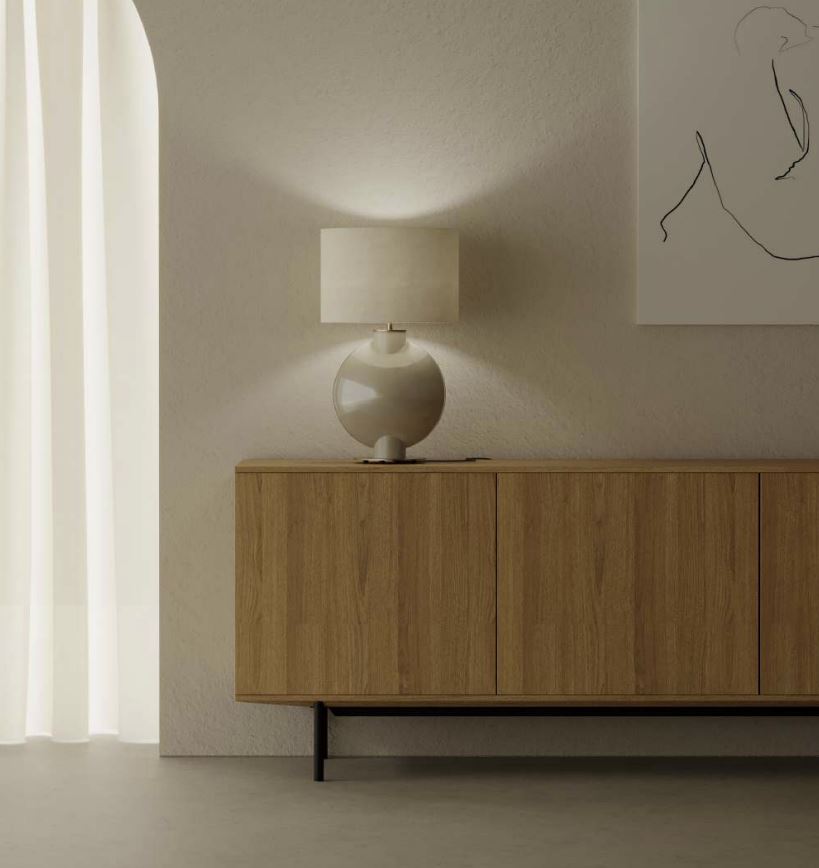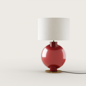 Lámpara de sobremesa Tilla. La lámpara de sobremesa Tilla es un clásico renovado. Una base, original fabricada en vidrio pintado sujeta una gran pantalla. Los detalles metálicos la dotan de una gran personalidad. Las posibilidades son infinitas, gracias a la variedad de colores aplicables al vidrio. Ver paleta de colores disponibles.