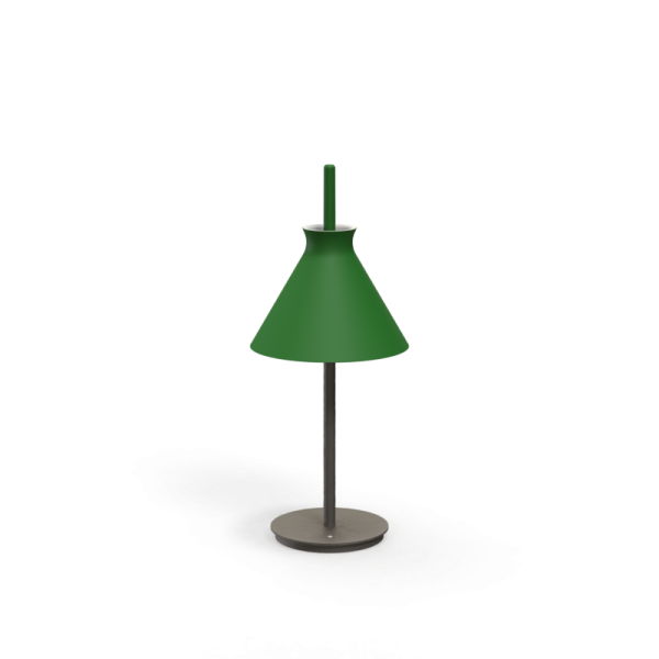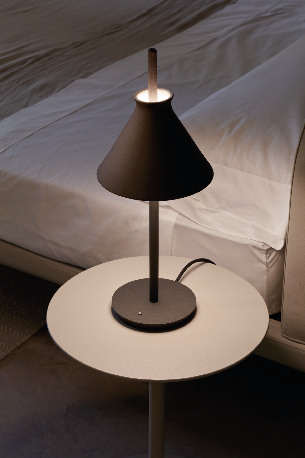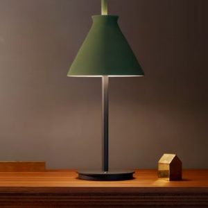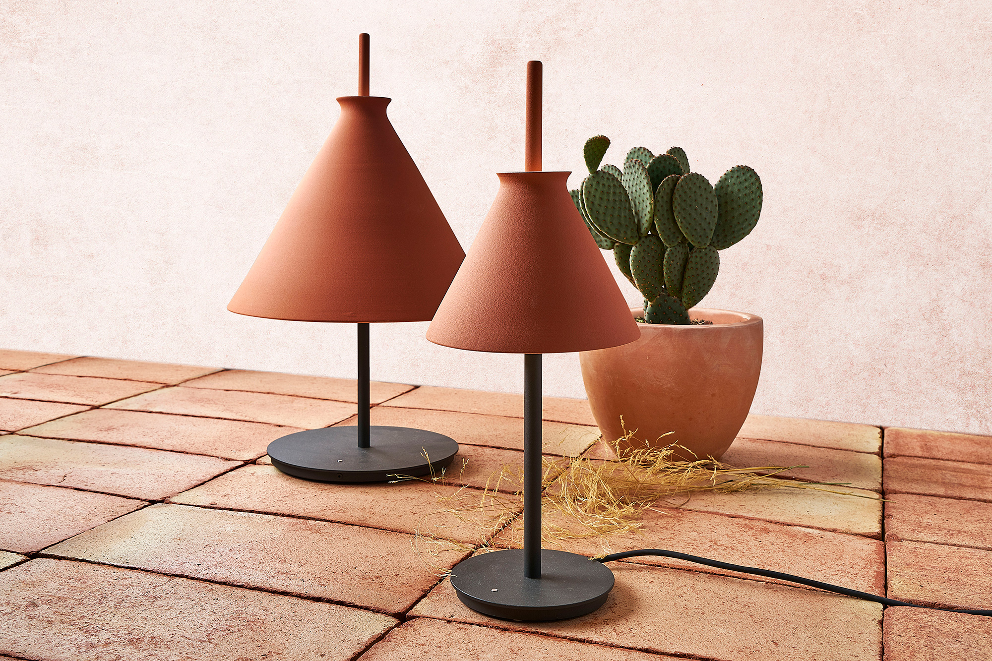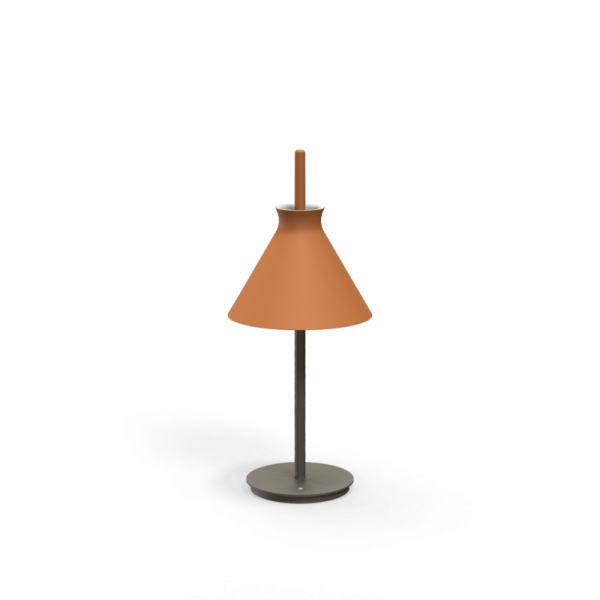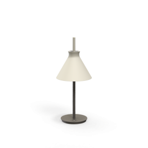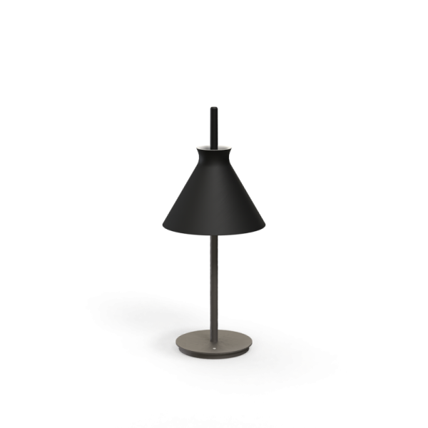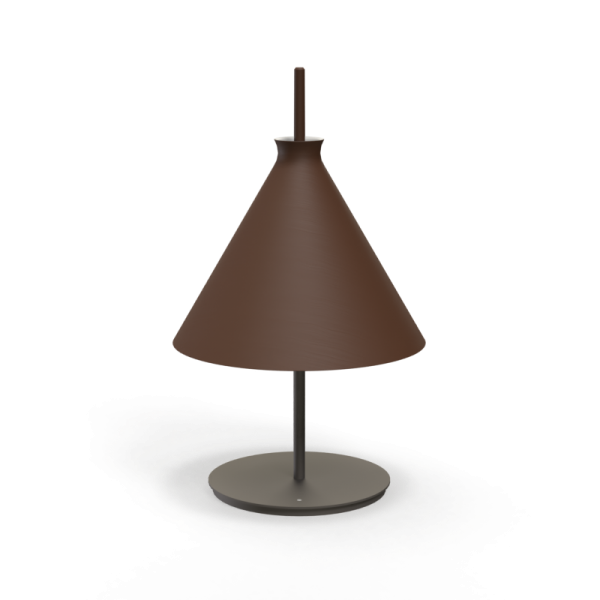 Lámpara de sobremesa Totana. La lámpara de sobremesa Totana es parte de una colección de luminarias inspirada en los orígenes geográficos de la marca POTT. Totana (Murcia-España) tiene paisaje de contrastes, tonalidades de barro, alfarería y sabiduría, luces y sobres, fuego y agua. Formada por dos volúmenes que se interseccionan. El primero envolvente, gestual, voluminoso, de forma cónica con una terminación superior que hace referencia a la boca de un envase cerámico torneado a mano; y el segundo lineal y estructural, definido como un trazo. Como resultado, una luminaria cálida en equilibrio entre la materialidad y la luz.