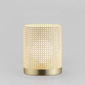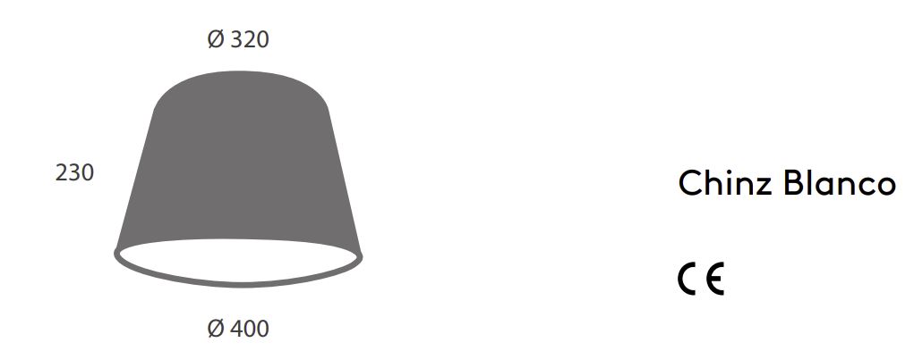 - Pantalla de algodón blanco: Pantalla de algodón blanco con un diámetro de 35 cm en su parte superior y de 40 cm en su parte inferior y con una altura de 23 cm