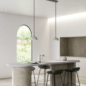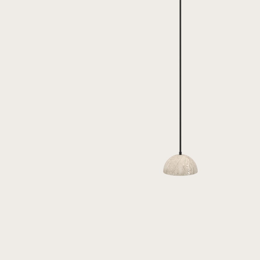 Su diseño presenta un semicírculo de mármol travertino que irradia una calidez única, perfecta para crear ambientes acogedores y sofisticados en cualquier espacio de tu hogar. El contraste del cilindro metálico negro o en oro envejecido agrega un toque contemporáneo y estabilidad a la lámpara.