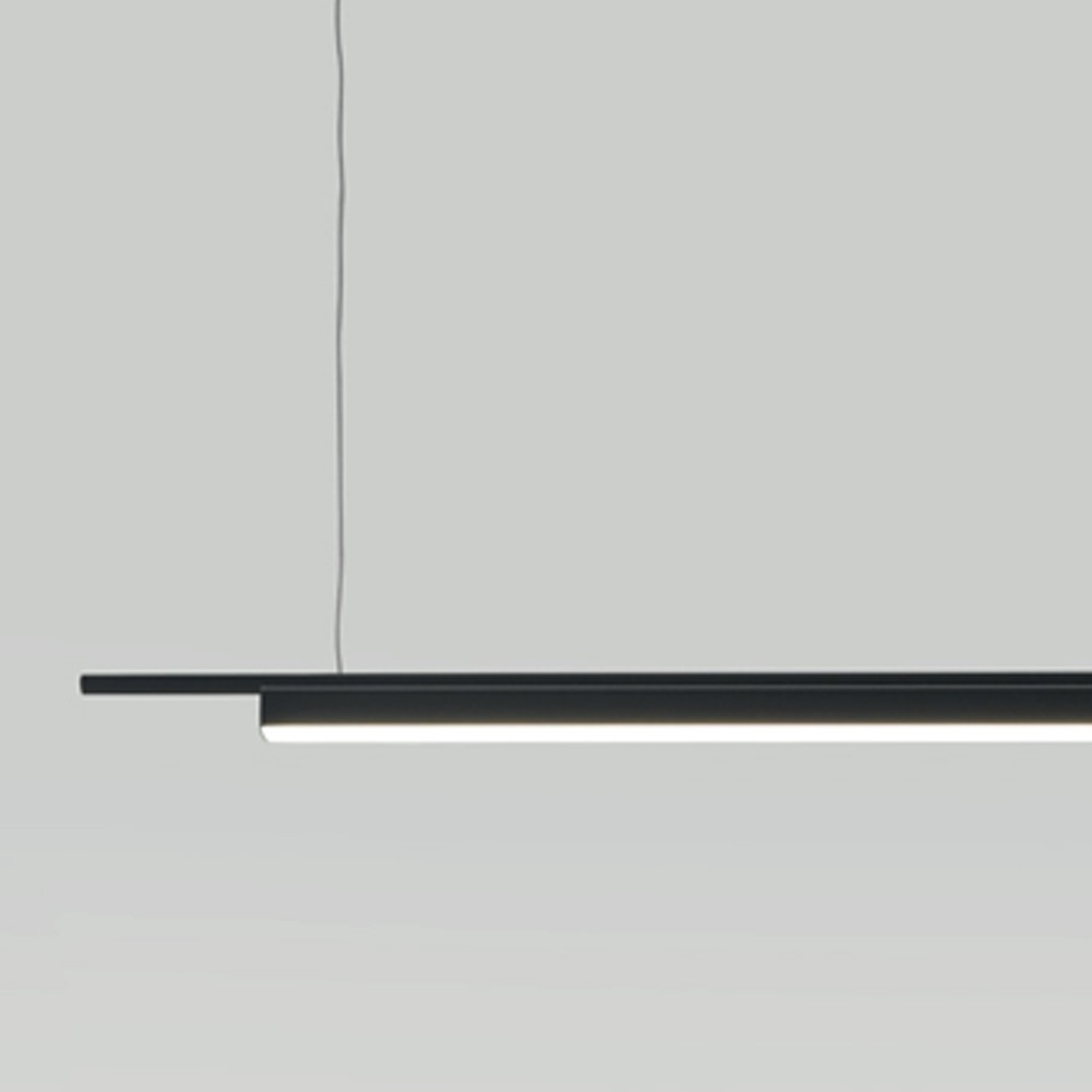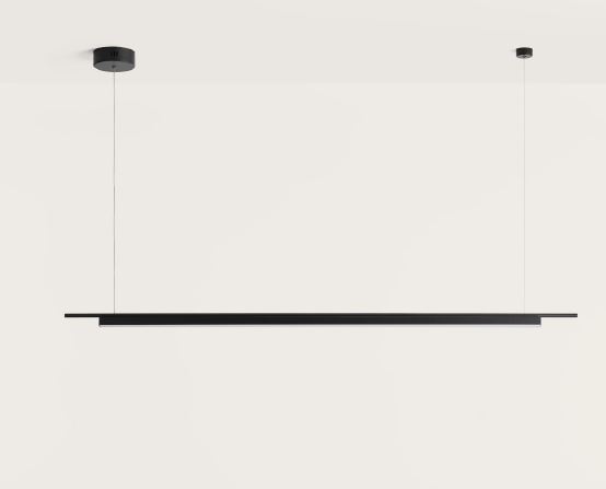 Lámpara suspendida Coln. La lámpara suspendida Coln es la máxima expresión de la simplicidad. Una fina estructura sujeta una sutil perfil de tira led.Es una lámpara colgante elegante y sutil, funcional y discreta. Ideal para iluminar una mesa de comedor rectangular, para oficinas o islas de cocina.