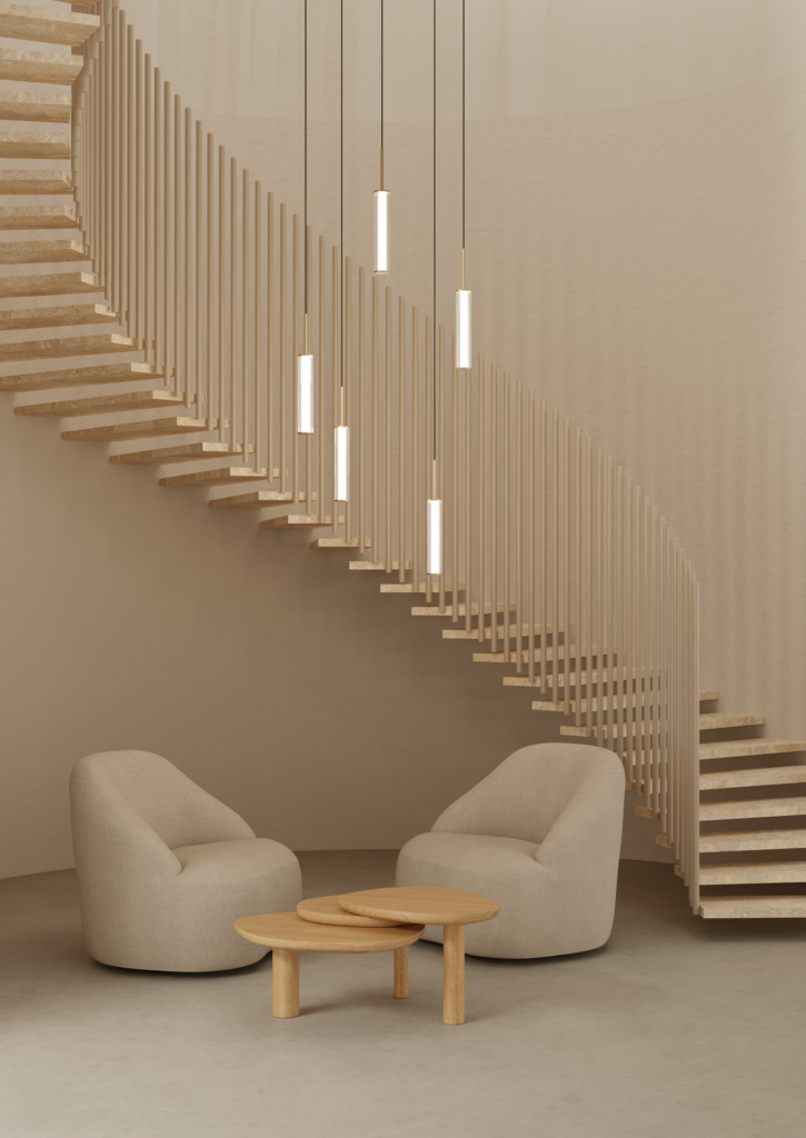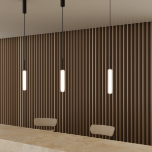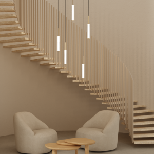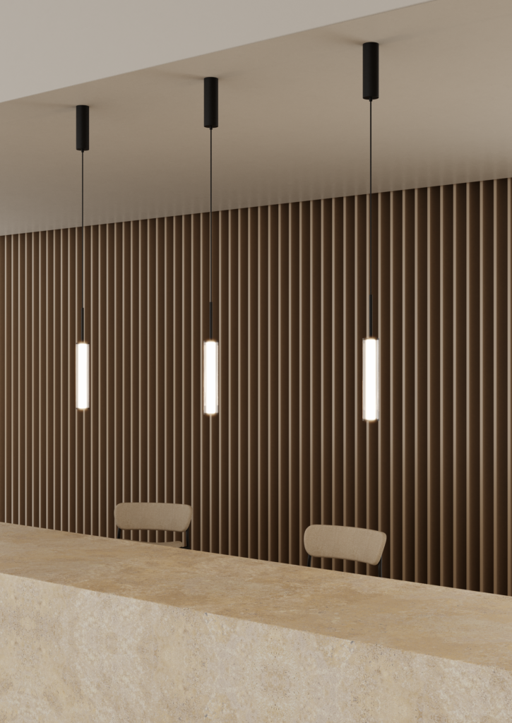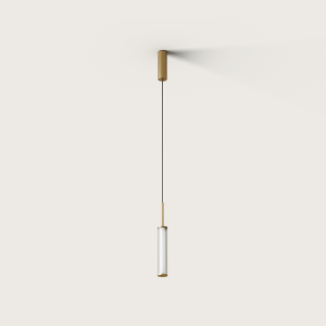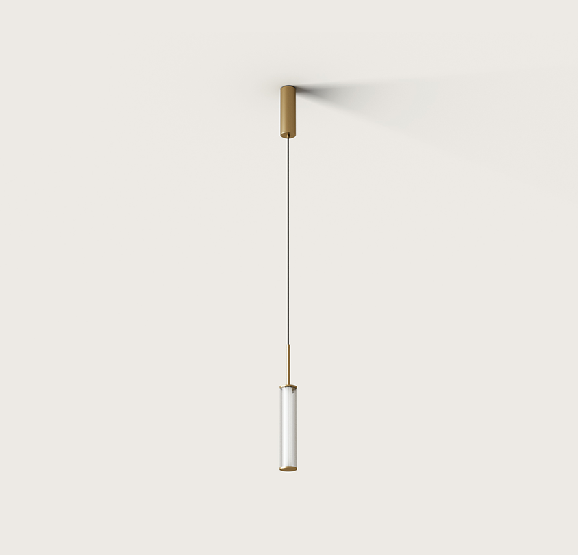 Lámpara suspendida Ison. La Lámpara colgante Ison es elegancia a primera vista. Una tulipa de vidrio estriado cilíndrica es sujetada por una estructura de acero en oro mate o negro mate.