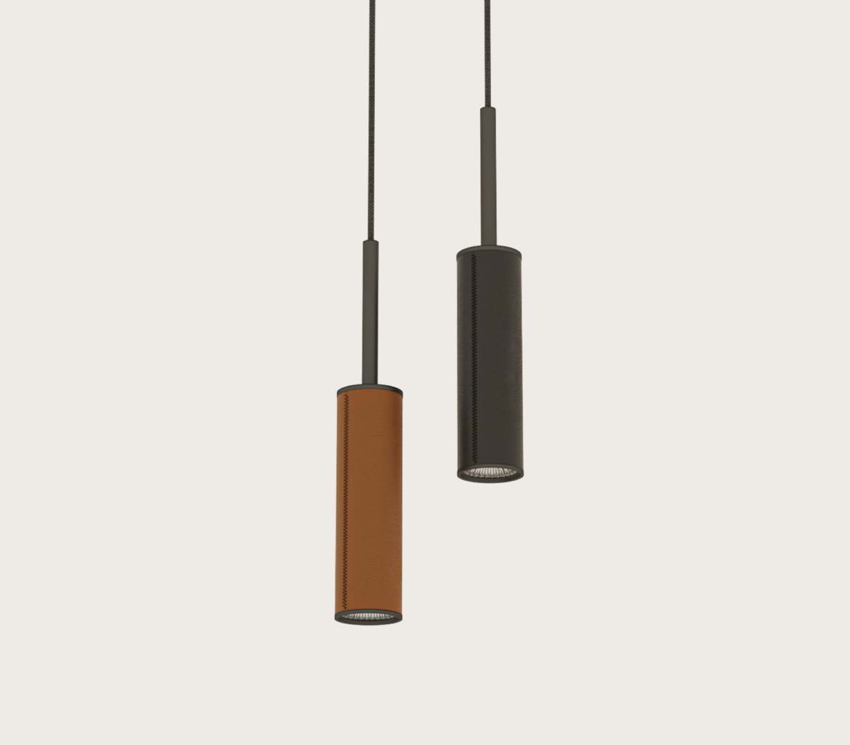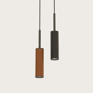 Lámpara suspendida Tura. La lámpara colgante Tura es una elegante luminaria fabricada en acero negro con el cabezal forrado en piel disponible en varios colores (negro, marrón y naranja) y un cable textil negro. Una lámpara ideal como luz de acento y puntual. Muy decorativa y distinguida.