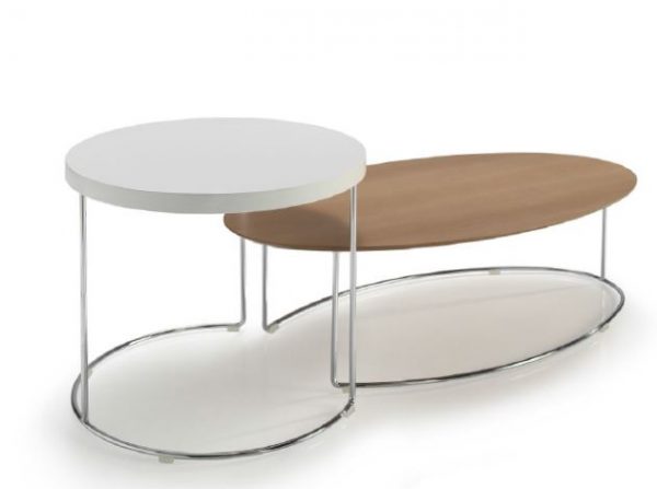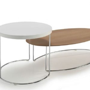 Mesa auxiliar GINGER. La mesa auxiliar GINGER, junto a FRED, pertenecen a un conjunto de mesas auxiliares que pueden funcionar tanto juntas como separadas dada la complementariedad en sus formas y altura. Diseñadas en un estilo simple pero atractivo, estas mesas cubren todas las necesidades funcionales de una mesa auxiliar pudiendo incluso utilizarse como complemento del sofá.