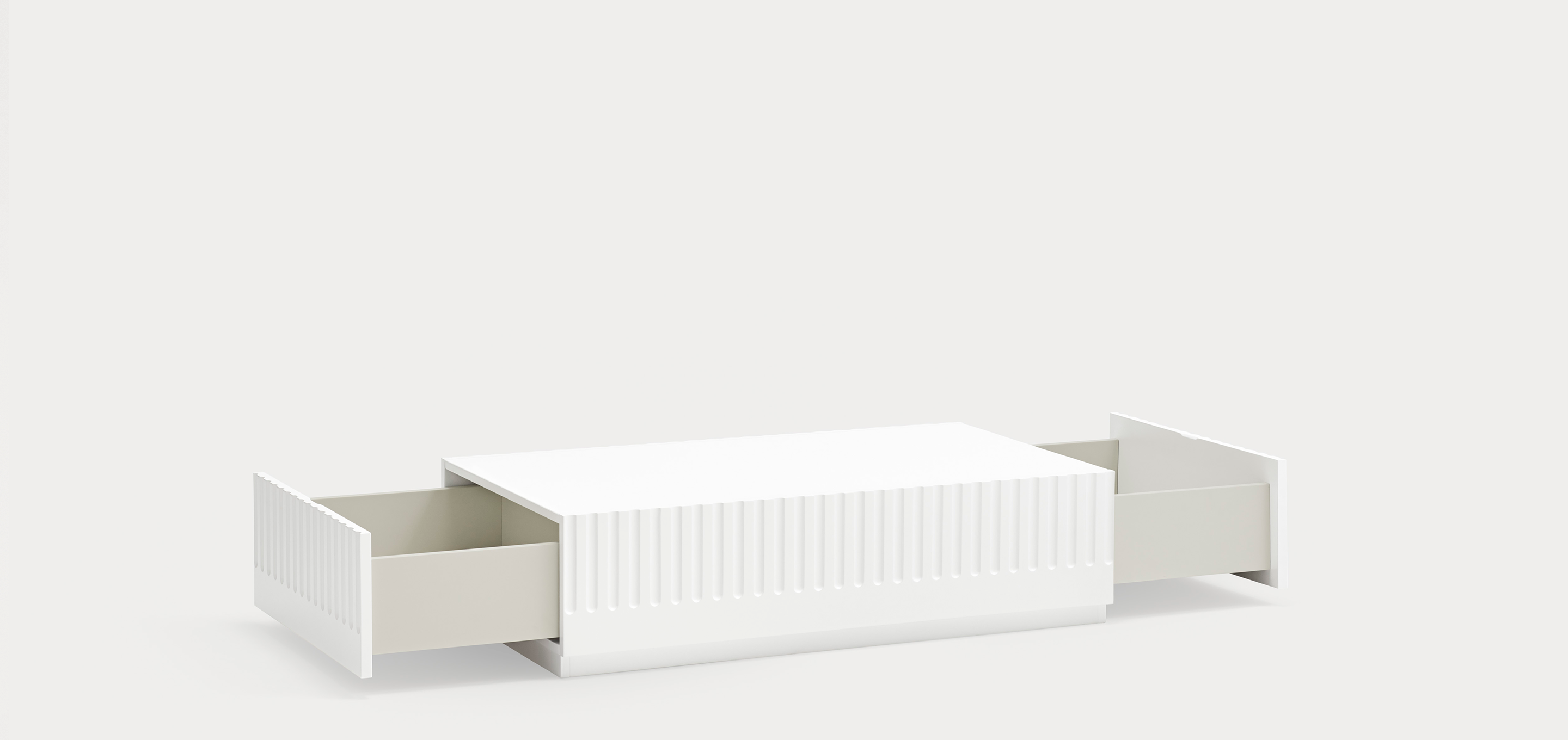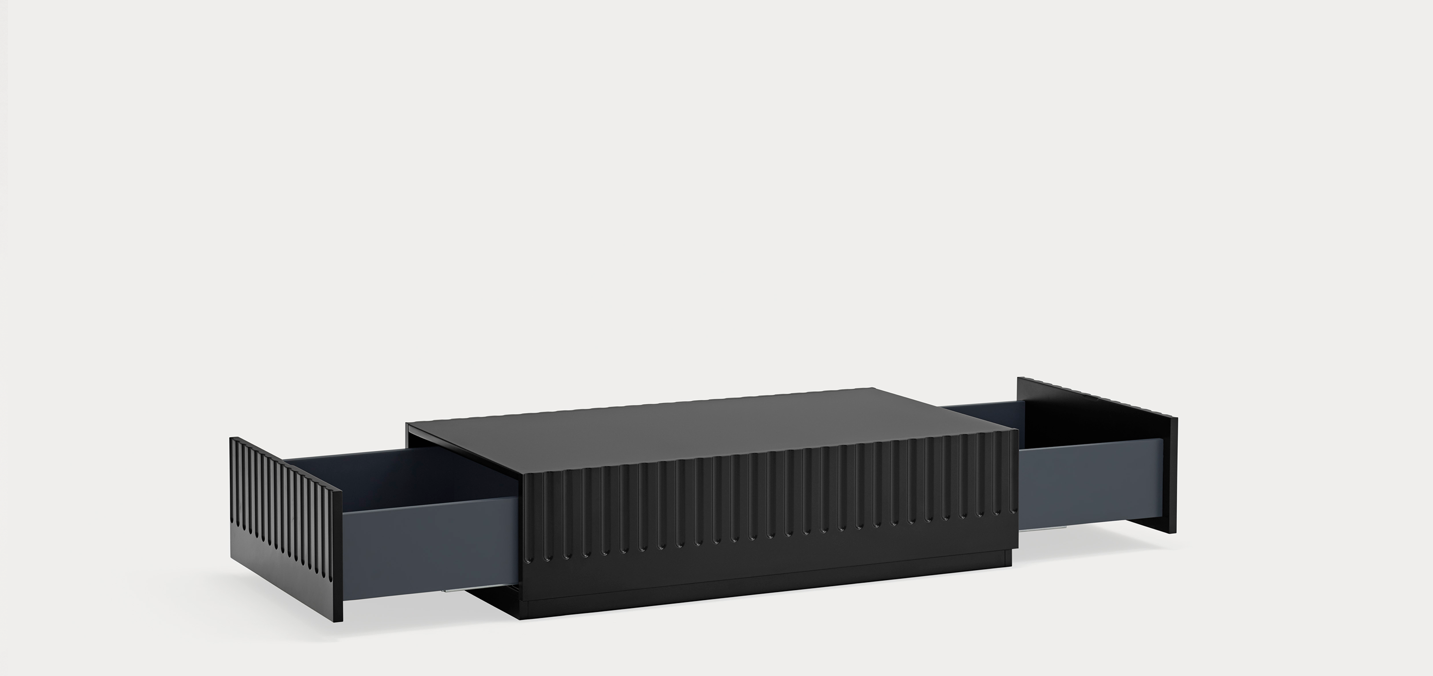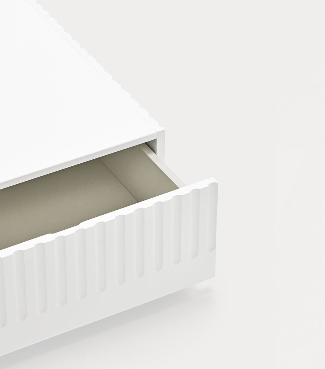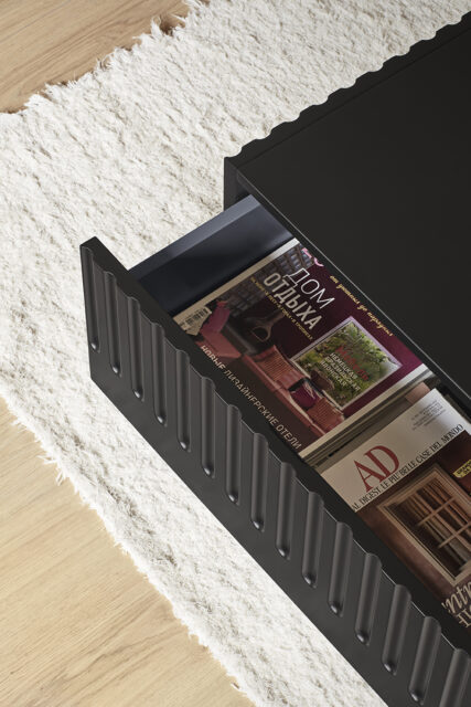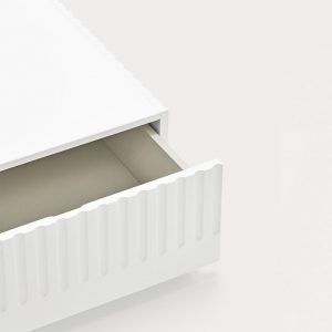 Mesa de centro Doric. La mesa de centro Doric es grande, robusta y con unas líneas que nos recuerdan a la arquitectura de la Grecia clásica. Los surcos verticales y su gran presencia nos recuerda como estos clásicos buscaban la belleza y la proporcionalidad en sus obras. Es una mesa muy práctica que da soporte al almacenaje en el salón. Dispone de dos grandes cajones a ambos lados de la misma donde poder almacenar objetos de uso cotidiano y así tener la visión más limpia y ordenada de nuestro espacio.