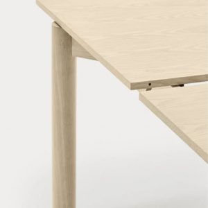 Mesa extensible Atlas. Simulando permanecer en un equilibrio constante, la mesa de comedor Atlas es una pieza robusta y resistente, donde la contraposición de conceptos aparentemente opuestos conviven en ella. La colección presenta 4 patas con un ligero desfase y rematadas con un pie redondeado, las cuales dan soporte al sobre de la mesa.