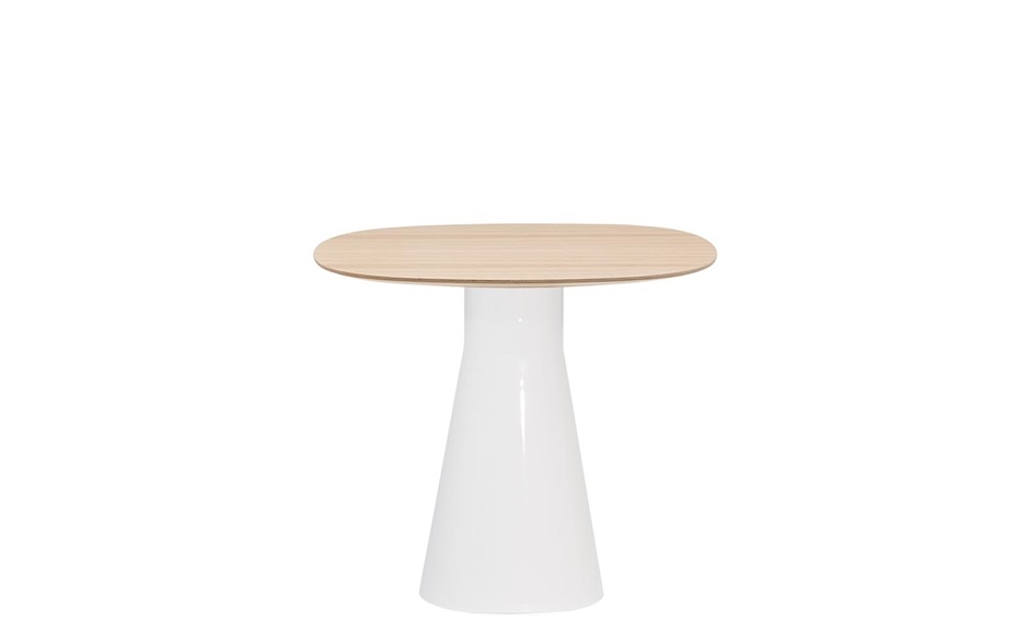 Mesa REVERSE 38. La mesa Reverse 38 es una mesa con base central en polietileno acabado mate de una medida de la base 38 cm. Esta base está disponible en blanco y negro mate o brillo y se combina con tableros de diferentes medidas y acabados hasta un máximo de 100cm.