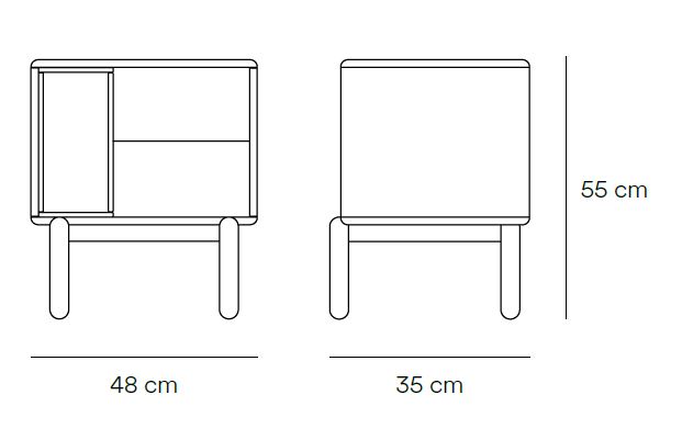 Mesita de noche Corvo. La mesita de noche Corvo tiene una silueta redondeada, de líneas suaves y de aspecto voluminoso. El ensamblaje de sus piezas quedan integradas mostrando un aspecto muy limpio y cuidado. Se encuentra disponible en color crema y gris perla, con un nicho forrado en chapa de roble perfecto para guardar libros. Ademas dispone de dos cajones para un almacenaje extra. Un diseño perfecto para guardar los objetos que usamos cotidianamente en el dormitorio (libros, gafas, antifaz…etc).